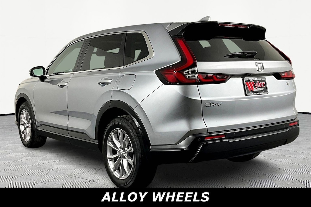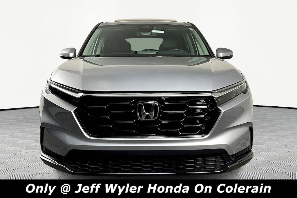 Jeff Wyler Honda of Colerain is proud to offer this charming 2024 Honda CR-V EX-L in sparkle silver metallic. Well equipped with: 4-Wheel Disc Brakes, 5.64 Axle Ratio, 8 Speakers, ABS brakes, Adaptive Cruise Control: Adaptive Cruise Control (ACC) with Low-Speed Follow, Air Conditioning, Alloy wheels, AM/FM radio: SiriusXM, Auto High-beam Headlights, Auto-dimming Rear-View mirror, Automatic temperature control, Blind Spot Information (BSI) System warning, Brake assist, Bumpers: body-color, Compass, Delay-off headlights, Driver door bin, Driver vanity mirror, Dual front impact airbags, Dual front side impact airbags, Electronic Stability Control, Exterior Parking Camera Rear, Four wheel independent suspension, Front anti-roll bar, Front Bucket Seats, Front Center Armrest, Front dual zone A/C, Front reading lights, Fully automatic headlights, Heated door mirrors, Heated Front Bucket Seats, Heated front seats, Illuminated entry, Knee airbag, Leather Seat Trim, Leather Shift Knob, Leather steering wheel, Low tire pressure warning, Memory seat, Occupant sensing airbag, Outside temperature display, Overhead airbag, Overhead console, Panic alarm, Passenger door bin, Passenger vanity mirror, Power door mirrors, Power driver seat, Power Liftgate, Power moonroof, Power passenger seat, Power steering, Power windows, Radio data system, Radio: 320-Watt AM/FM/HD/SiriusXM Audio System, Rear anti-roll bar, Rear reading lights, Rear seat center armrest, Rear side impact airbag, Rear window defroster, Rear window wiper, Remote keyless entry, Security system, Speed control, Speed-sensing steering, Speed-Sensitive Wipers, Split folding rear seat, Spoiler, Steering wheel mounted audio controls, Tachometer, Telescoping steering wheel, Tilt steering wheel, Traction control, Trip computer, Turn signal indicator mirrors, Variably intermittent wipers, Wheels: 18" Sparkle Silver Metallic, and Wireless Apple CarPlay/Wireless Android Auto.