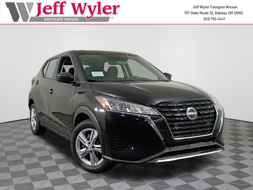 Super Black 2025 Nissan Kicks Play S 1.6L 4-Cylinder DOHC 16V FWD CVT with Xtronic 31/36 City/Highway MPG Jeff Wyler Eastgate Auto Mall is excited to offer this terrific 2025 Nissan Kicks Play S in Super Black. Well equipped with: 16" Steel Wheels w/Full Covers, 6 Speakers, ABS brakes, Air Conditioning, AM/FM radio, Apple CarPlay/Android Auto, Auto High-beam Headlights, Blind Spot Warning, Brake assist, Bumpers: body-color, Carpeted Floor Mats w/Cargo Mat, Center Armrest w/Storage, Cloth Seat Trim w/Single Stitch, Driver door bin, Driver vanity mirror, Driver's Seat Mounted Armrest, Dual front impact airbags, Dual front side impact airbags, Electronic Stability Control, Front anti-roll bar, Front Bucket Seats, Front reading lights, Front wheel independent suspension, Fully automatic headlights, Illuminated entry, Knee airbag, Low tire pressure warning, Occupant sensing airbag, Outside temperature display, Overhead airbag, Panic alarm, Passenger door bin, Passenger vanity mirror, Power door mirrors, Power steering, Power windows, Radio data system, Radio: AM/FM Audio System, Rear Parking Sensors, Rear reading lights, Rear side impact airbag, Rear window defroster, Rear window wiper, Remote keyless entry, Speed control, Split folding rear seat, Sport steering wheel, Steering wheel mounted audio controls, Tachometer, Telescoping steering wheel, Tilt steering wheel, Traction control, Trip computer, and Variably intermittent wipers. 31/36 City/Highway MPG