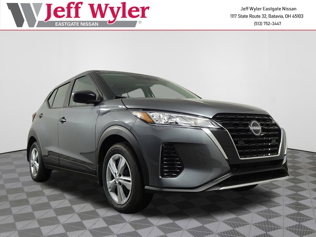 Gun Metallic 2025 Nissan Kicks Play S 1.6L 4-Cylinder DOHC 16V FWD CVT with Xtronic 31/36 City/Highway MPG Jeff Wyler Eastgate Auto Mall is pleased to offer this superb-looking 2025 Nissan Kicks Play S in Gun Metallic. Well equipped with: 16" Steel Wheels w/Full Covers, 6 Speakers, ABS brakes, Air Conditioning, AM/FM radio, Apple CarPlay/Android Auto, Auto High-beam Headlights, Blind Spot Warning, Brake assist, Bumpers: body-color, Carpeted Floor Mats w/Cargo Mat, Center Armrest w/Storage, Cloth Seat Trim w/Single Stitch, Driver door bin, Driver vanity mirror, Driver's Seat Mounted Armrest, Dual front impact airbags, Dual front side impact airbags, Electronic Stability Control, Front anti-roll bar, Front Bucket Seats, Front reading lights, Front wheel independent suspension, Fully automatic headlights, Illuminated entry, Knee airbag, Low tire pressure warning, Occupant sensing airbag, Outside temperature display, Overhead airbag, Panic alarm, Passenger door bin, Passenger vanity mirror, Power door mirrors, Power steering, Power windows, Radio data system, Radio: AM/FM Audio System, Rear Parking Sensors, Rear reading lights, Rear side impact airbag, Rear window defroster, Rear window wiper, Remote keyless entry, Speed control, Splash Guards Grain (4 Piece), Split folding rear seat, Sport steering wheel, Steering wheel mounted audio controls, Tachometer, Telescoping steering wheel, Tilt steering wheel, Traction control, Trip computer, and Variably intermittent wipers. 31/36 City/Highway MPG