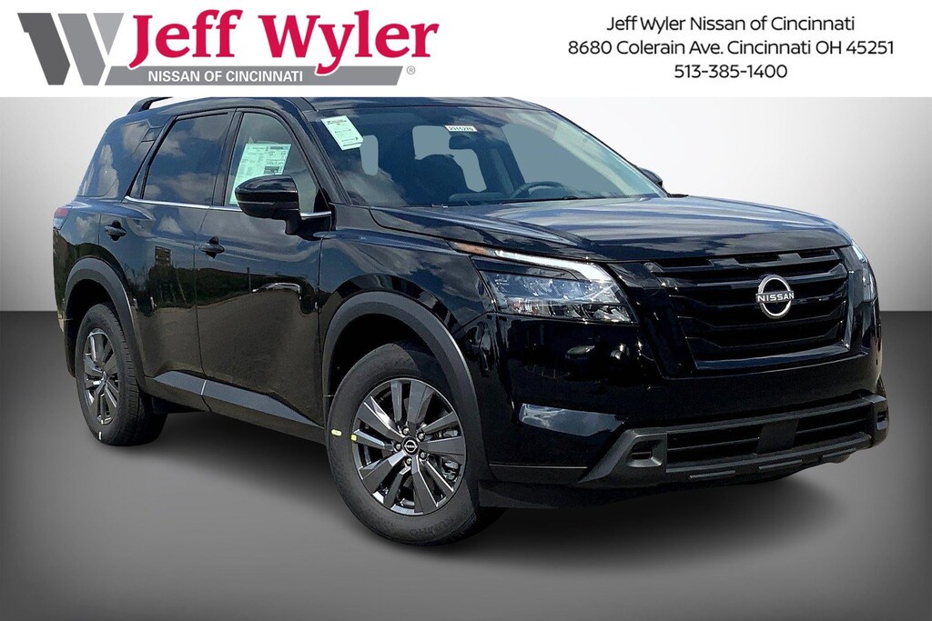 Super Black 2025 Nissan Pathfinder SV 4WD 9-Speed Automatic Jeff Wyler Nissan of Cincinnati is pleased to offer this terrific-looking 2025 Nissan Pathfinder SV in Super Black. Well equipped with: Black Appearance Package (Black Grille and Black Liftgate Emblems), 4WD, 3rd row seats: bench, 4-Wheel Disc Brakes, 6 Speakers, ABS brakes, Air Conditioning, Alloy wheels, AM/FM radio: SiriusXM, Auto High-beam Headlights, Automatic temperature control, Bench Seat Carpeted Floor Mats (Set of 4), Brake assist, Bumpers: body-color, Cloth Seating Surfaces, Cross Bars, Delay-off headlights, Driver door bin, Driver vanity mirror, Dual front impact airbags, Dual front side impact airbags, Electronic Stability Control, Emergency communication system, Four wheel independent suspension, Front anti-roll bar, Front Bucket Seats, Front Center Armrest, Front dual zone A/C, Front reading lights, Fully automatic headlights, Heated door mirrors, Heated Front Bucket Seats, Heated front seats, Illuminated entry, Knee airbag, Leather steering wheel, Low tire pressure warning, NissanConnect featuring Apple CarPlay and Android Auto, Occupant sensing airbag, Outside temperature display, Overhead airbag, Overhead console, Panic alarm, Passenger door bin, Passenger vanity mirror, Power door mirrors, Power driver seat, Power Liftgate, Power steering, Power windows, Radio data system, Radio: AM/FM Audio System w/NissanConnect, Rear air conditioning, Rear anti-roll bar, Rear Parking Sensors, Rear reading lights, Rear seat center armrest, Rear side impact airbag, Rear window defroster, Rear window wiper, Reclining 3rd row seat, Remote keyless entry, Security system, Speed control, Speed-sensing steering, Split folding rear seat, Spoiler, Steering wheel mounted audio controls, Tachometer, Telescoping steering wheel, Tilt steering wheel, Traction control, Trip computer, Turn signal indicator mirrors, Variably intermittent wipers, and Wheels: 18" x 8J Painted Alloy. 3.5L V6 DOHC 4WD.Recent Arrival! 21/27 City/Highway MPGWyler Family First Package Includes: NanoCure Appearance Protection: Exterior & Interior Chemical Sealant Applied to Protect Against Environmental Hazards (7 Year Warranty Coverage). Pulse- Rear end Collision Avoidance System Theft Deterrent Strategy gives you 5 Years of Coverage against vehicle Theft, Offering up to a $5,000 benefit.