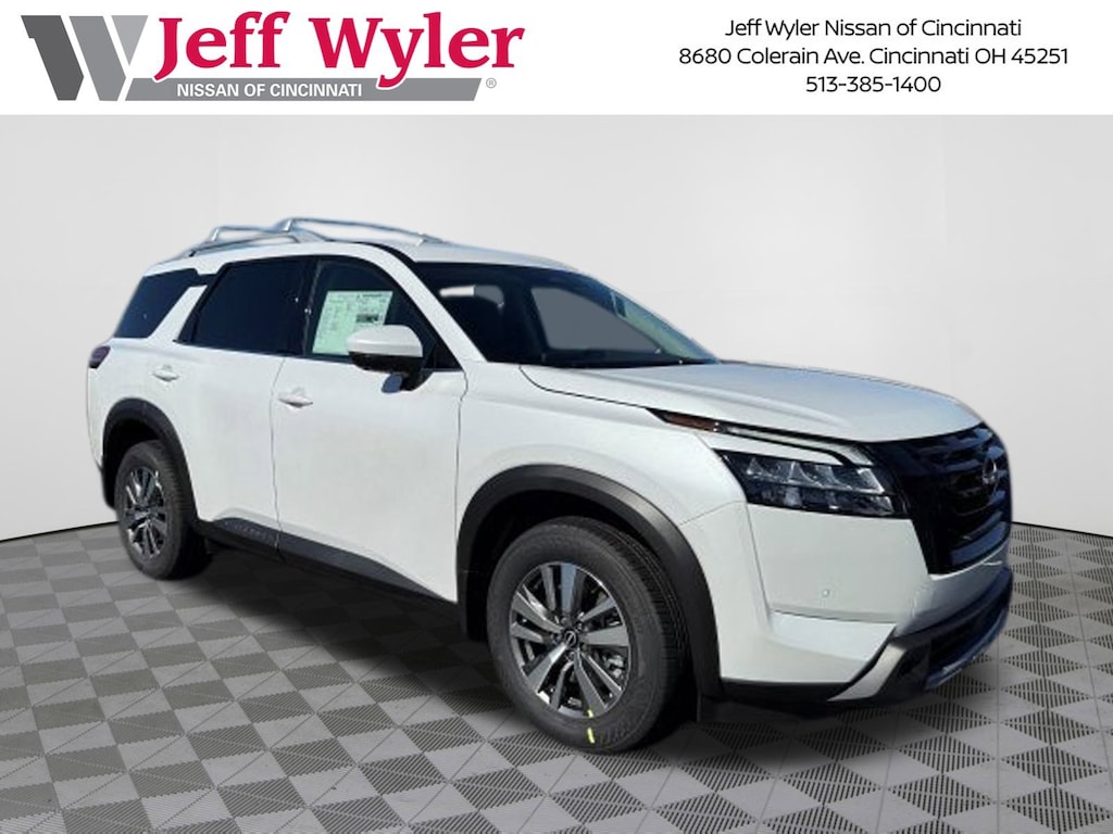 $9,556 off MSRP! Everest White Pearl Tricoat 2025 Nissan Pathfinder SL 4WD 9-Speed Automatic Jeff Wyler Nissan of Cincinnati is pumped up to offer this superb-looking 2025 Nissan Pathfinder SL in Everest White Pearl Tricoat. Well equipped with: Black Appearance Package (Black Grille and Black Liftgate Emblems), 4WD, 3rd row seats: bench, 4-Wheel Disc Brakes, 6 Speakers, ABS brakes, Air Conditioning, Alloy wheels, AM/FM radio: SiriusXM, Auto High-beam Headlights, Auto-dimming Rear-View mirror, Automatic temperature control, Bench Seat Carpeted Floor Mats (Set of 4), Brake assist, Bumpers: body-color, Cross Bars, Delay-off headlights, Driver door bin, Driver vanity mirror, Dual front impact airbags, Dual front side impact airbags, Electronic Stability Control, Emergency communication system, Exterior Parking Camera Rear, Four wheel independent suspension, Front anti-roll bar, Front Bucket Seats, Front Center Armrest, Front dual zone A/C, Front reading lights, Fully automatic headlights, Garage door transmitter: HomeLink, Heated door mirrors, Heated Front Bucket Seats, Heated front seats, Heated steering wheel, Illuminated entry, Knee airbag, Leather steering wheel, Leather-Appointed Seating Surfaces, Low tire pressure warning, Navigation system: NissanConnect with Navigation and Services, NissanConnect featuring Apple CarPlay and Android Auto, NissanConnect w/Navigation & Services, Occupant sensing airbag, Outside temperature display, Overhead airbag, Overhead console, Panic alarm, Passenger door bin, Passenger vanity mirror, Power door mirrors, Power driver seat, Power Liftgate, Power passenger seat, Power steering, Power windows, Premium Paint, Radio data system, Radio: AM/FM Audio System, Rear air conditioning, Rear anti-roll bar, Rear reading lights, Rear seat center armrest, Rear side impact airbag, Rear window defroster, Rear window wiper, Reclining 3rd row seat, Remote keyless entry, Security system, Speed control, Speed-sensing steering, Split folding rear seat, Spoiler, Steering wheel mounted audio controls, Tachometer, Telescoping steering wheel, Tilt steering wheel, Traction control, Trip computer, Turn signal indicator mirrors, Variably intermittent wipers, and Wheels: 18" x 8J Machined Alloy. 3.5L V6 DOHC 4WD.Recent Arrival! 21/27 City/Highway MPGWyler Family First Package Includes: NanoCure Appearance Protection: Exterior & Interior Chemical Sealant Applied to Protect Against Environmental Hazards (7 Year Warranty Coverage). Pulse- Rear end Collision Avoidance System Theft Deterrent Strategy gives you 5 Years of Coverage against vehicle Theft, Offering up to a $5,000 benefit. Price includes: $5000 - Nissan Customer Cash. Exp. 12/01/2025