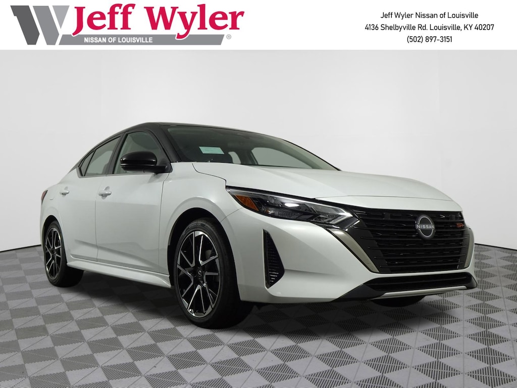 Recent Arrival! Jeff Wyler Nissan of Louisville is honored to offer this great-looking 2025 Nissan Sentra SR in Aspen White Tricoat/Super Black. Well equipped with: CVT with Xtronic, Sport Cloth, 18" Alloy Wheels, 4-Wheel Disc Brakes, 8 Speakers, ABS brakes, Air Conditioning, Alloy wheels, AM/FM radio: SiriusXM, Auto High-beam Headlights, Automatic temperature control, Blind Spot Warning, Brake assist, Bumpers: body-color, Delay-off headlights, Driver door bin, Driver vanity mirror, Dual front impact airbags, Dual front side impact airbags, Electronic Stability Control, Four wheel independent suspension, Front anti-roll bar, Front Bucket Seats, Front Center Armrest, Front dual zone A/C, Front reading lights, Fully automatic headlights, Heated door mirrors, Heated Front Bucket Seats, Heated front seats, Illuminated entry, Knee airbag, Leather Shift Knob, Low tire pressure warning, NissanConnect featuring Apple CarPlay and Android Auto, Occupant sensing airbag, Outside temperature display, Overhead airbag, Overhead console, Panic alarm, Passenger door bin, Passenger vanity mirror, Power door mirrors, Power steering, Power windows, Radio data system, Radio: AM/FM w/RDS/MP3/Aux-In, Rear anti-roll bar, Rear Parking Sensors, Rear seat center armrest, Rear side impact airbag, Rear window defroster, Remote keyless entry, Security system, Speed control, Speed-sensing steering, Split folding rear seat, Spoiler, Sport Cloth Seat Trim, Steering wheel mounted audio controls, Tachometer, Telescoping steering wheel, Tilt steering wheel, Traction control, Trip computer, Turn signal indicator mirrors, and Variably intermittent wipers.2025 Nissan Sentra SR Aspen White Tricoat/Super Black Wyler Family First Package Includes: NanoCure Appearance Protection: Exterior & Interior Chemical Sealant Applied to Protect Against Environmental Hazards (7 Year Warranty Coverage). Pulse- Rear end Collision Avoidance System Theft Deterrent Strategy gives you 5 Years of Coverage against vehicle Theft, Offering up to a $5,000 benefit. CVT with Xtronic, Sport Cloth. Customer's May Not Qualify for All Rebates. Prices Do Not Include Tax, License. $500 - Nissan MY25 Sentra Bonus Cash. Exp. 11/03/2025