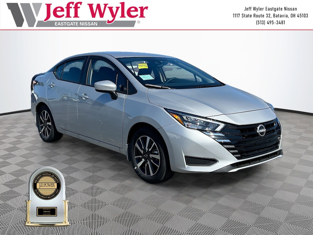 Brilliant Silver Metallic 2025 Nissan Versa 1.6 SV 1.6L I4 DOHC 16V FWD CVT 32/40 City/Highway MPG Jeff Wyler Eastgate Auto Mall is honored to offer this wonderful 2025 Nissan Versa 1.6 SV in Brilliant Silver Metallic. Well equipped with: Trunk Package (Shopping Bag Hooks and Trunk Net), 16" Aluminum Alloy Wheels, 4 Speakers, ABS brakes, Air Conditioning, Alloy wheels, Apple CarPlay/Android Auto, Auto High-beam Headlights, Blind Spot Warning, Brake assist, Bumpers: body-color, Cargo Blocks, Carpeted Floor Mats & Trunk Mat (5-Piece Set), Delay-off headlights, Driver door bin, Driver vanity mirror, Dual front impact airbags, Dual front side impact airbags, Electronic Stability Control, Front anti-roll bar, Front Bucket Seats, Front Center Armrest, Front reading lights, Front wheel independent suspension, Fully automatic headlights, Heated door mirrors, Illuminated entry, Knee airbag, Low tire pressure warning, Occupant sensing airbag, Outside temperature display, Overhead airbag, Panic alarm, Passenger door bin, Passenger vanity mirror, Power door mirrors, Power steering, Power windows, Radio data system, Radio: AM/FM Audio System, Rear Parking Sensors, Rear side impact airbag, Rear window defroster, Remote keyless entry, Speed control, Splash Guards, Split folding rear seat, Steering wheel mounted audio controls, Tachometer, Telescoping steering wheel, Tilt steering wheel, Traction control, Trip computer, Upgraded Cloth Seat Trim, and Variably intermittent wipers. 32/40 City/Highway MPG Price includes: $750 - Nissan MY25 Bonus Cash. Exp. 03/31/2026