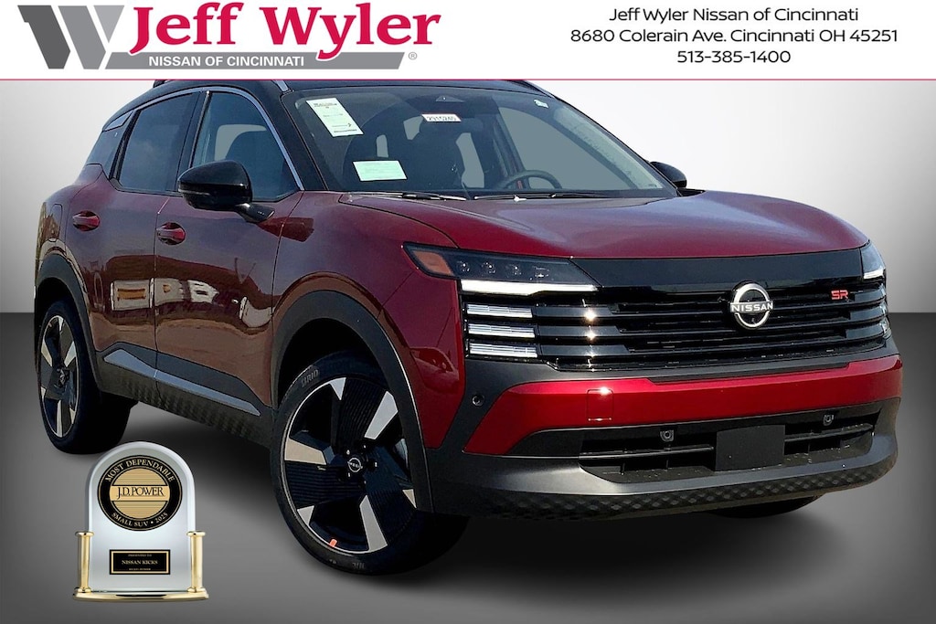 Black 2026 Nissan Kicks SR AWD CVT with Xtronic Jeff Wyler Nissan of Cincinnati is excited to offer this charming 2026 Nissan Kicks SR in Black. Well equipped with: Cold Weather Package (Heated Front Seats, Heated Mirrors, and Rear Floor Heater Ducts), SR Premium Package (Bose 10 -Speaker Audio, Driver Seat-Mounted Supplemental Air Bag, Heated Steering Wheel, and Panoramic Moonroof), 17" Alloy Wheels, 19" Alloy Wheels, 2-Tone Paint, 4-Wheel Disc Brakes, 6 Speakers, ABS brakes, Air Conditioning, Alloy wheels, AM/FM radio, Auto High-beam Headlights, Automatic temperature control, Brake assist, Bumpers: body-color, Carpeted Floor Mats, Crossbars, Delay-off headlights, Driver door bin, Driver vanity mirror, Dual front impact airbags, Dual front side impact airbags, Electronic Stability Control, Emergency communication system: NissanConnect Services, Exterior Parking Camera Rear, Four wheel independent suspension, Front anti-roll bar, Front Bucket Seats, Front Center Armrest, Front reading lights, Fully automatic headlights, Garage door transmitter: myQ Connected Garage, Illuminated entry, Knee airbag, Leather Shift Knob, Leather steering wheel, Low tire pressure warning, NissanConnect featuring Apple CarPlay and Android Auto, Occupant sensing airbag, Outside temperature display, Overhead airbag, Overhead console, Panic alarm, Passenger door bin, Passenger vanity mirror, Power door mirrors, Power steering, Power windows, Radio data system, Radio: AM/FM/SiriusXM Audio System, Rear anti-roll bar, Rear reading lights, Rear seat center armrest, Rear side impact airbag, Rear window defroster, Rear window wiper, Remote keyless entry, Security system, Speed control, Speed-sensing steering, Splash Guards, Split folding rear seat, Spoiler, Sport Leatherette w/Cloth Insert Seat Trim, Sport steering wheel, Steering wheel mounted audio controls, Tachometer, Telescoping steering wheel, Tilt steering wheel, Traction control, Trip computer, Turn signal indicator mirrors, and Variably intermittent wipers. 2.0L DOHCRecent Arrival! 27/34 City/Highway MPGWyler Family First Package Includes: NanoCure Appearance Protection: Exterior & Interior Chemical Sealant Applied to Protect Against Environmental Hazards (7 Year Warranty Coverage). Pulse- Rear end Collision Avoidance System Theft Deterrent Strategy gives you 5 Years of Coverage against vehicle Theft, Offering up to a $5,000 benefit. Price includes: $1000 - Nissan Customer Cash. Exp. 01/05/2026 $500 - Nissan MWR MY26 Kicks Bonus Cash - December. Exp. 01/05/2026