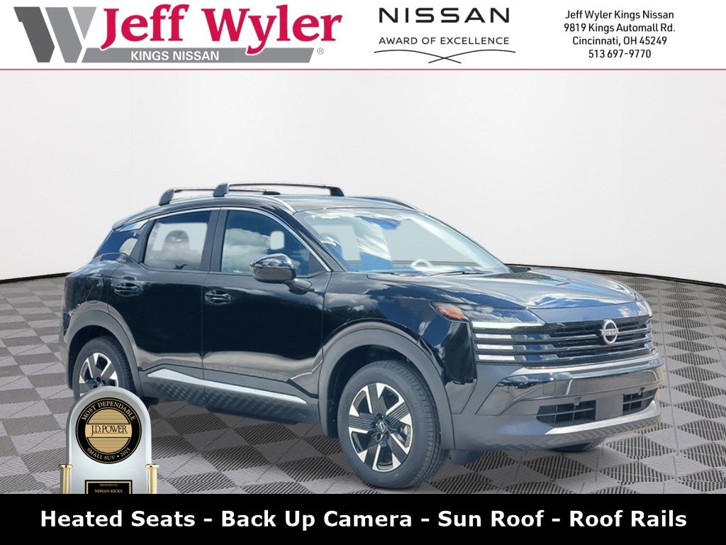 $3,814 off MSRP! Jeff Wyler Kings Nissan is very proud to offer this terrific 2026 Nissan Kicks SV in Super Black. Well equipped with: Cold Weather Package (Heated Front Seats, Heated Mirrors, and Rear Floor Heater Ducts), SV Premium Package (Illuminated Driver & Passenger Sun Visors, Panoramic Moonroof, and Sunglass Holder), 17" Alloy Wheels, 4 Speakers, 4-Wheel Disc Brakes, ABS brakes, Air Conditioning, Alloy wheels, AM/FM radio, Auto High-beam Headlights, Automatic temperature control, Blind Spot Warning, Brake assist, Bumpers: body-color, Carpeted Floor Mats, Cloth Seat Trim, Crossbars, Driver door bin, Driver vanity mirror, Dual front impact airbags, Dual front side impact airbags, Electronic Stability Control, Emergency communication system, Exterior Parking Camera Rear, Four wheel independent suspension, Front anti-roll bar, Front Bucket Seats, Front Center Armrest, Front reading lights, Fully automatic headlights, Illuminated entry, Knee airbag, Low tire pressure warning, NissanConnect featuring Apple CarPlay and Android Auto, Occupant sensing airbag, Outside temperature display, Overhead airbag, Panic alarm, Passenger door bin, Passenger vanity mirror, Power door mirrors, Power steering, Power windows, Radio data system, Radio: AM/FM/SiriusXM Audio System, Rear anti-roll bar, Rear reading lights, Rear side impact airbag, Rear window defroster, Rear window wiper, Remote keyless entry, Security system, Speed control, Speed-sensing steering, Splash Guards, Split folding rear seat, Spoiler, Sport steering wheel, Steering wheel mounted audio controls, Tachometer, Telescoping steering wheel, Tilt steering wheel, Traction control, Trip computer, and Variably intermittent wipers. 27/34 City/Highway MPGWyler Family First Package Includes: NanoCure Appearance Protection: Exterior & Interior Chemical Sealant Applied to Protect Against Environmental Hazards (7 Year Warranty Coverage). Pulse- Rear end Collision Avoidance System Theft Deterrent Strategy gives you 5 Years of Coverage against vehicle Theft, Offering up to a $5,000 benefit. Used vehicles 10 years of age or newer with less than 100,000 miles are eligible for the Wyler Assurance Program, but eligible vehicles must pass our reconditioning process and multi-point inspection. Provided the vehicle passes inspection, vehicles will be eligible for the 6 month/6,000 mile limited warranty. The 6 month/6,000 mile limited warranty is NOT available on AS-IS vehicles, wholesale vehicles, lease buyback/pass-thru vehicles or un-inspected vehicles. Note that this program can also apply to vehicles where the remaining factory coverage is less than 6 months or 6,000 miles. Please check the Federal Trade Commission (FTC) Buyers guide on the vehicle for full details as to whether or not warranty coverage may apply. Contact Dealer for additional details. The Wyler Assurance 6 month/6,000 Mile limited warranty ends 6 months from the date of the Retail Purchase Agreement (BUYERS ORDER) or when the vehicle's odometer registers 6,000 additional miles to the mileage listed on the BUYERS ORDER, whichever comes first. Your Deductible - The warranty holder on your contract pays the first $100 of each covered repair. Price includes: $1000 - Nissan Customer Cash. Exp. 02/02/2026 $500 - Nissan MWR MY26 Kicks Bonus Cash - January . Exp. 02/02/2026
