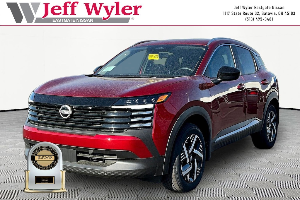 Scarlet Ember Tintcoat 2026 Nissan Kicks SV 2.0L DOHC FWD CVT with Xtronic 28/35 City/Highway MPG Jeff Wyler Eastgate Auto Mall is honored to offer this charming 2026 Nissan Kicks SV in Scarlet Ember Tintcoat. Well equipped with: Cold Weather Package (Heated Front Seats, Heated Mirrors, and Rear Floor Heater Ducts), SV Premium Package (Illuminated Driver and Passenger Sun Visors, Panoramic Moonroof, and Sunglass Holder), 4 Speakers, 4-Wheel Disc Brakes, ABS brakes, Air Conditioning, AM/FM radio, Auto High-beam Headlights, Automatic temperature control, Blind Spot Warning, Brake assist, Bumpers: body-color, Carpeted Floor Mats and Underfloor Protector, Cloth Seat Trim, Driver door bin, Driver vanity mirror, Dual front impact airbags, Dual front side impact airbags, Electronic Stability Control, Emergency communication system, Exterior Parking Camera Rear, Front anti-roll bar, Front Bucket Seats, Front Center Armrest, Front reading lights, Front wheel independent suspension, Fully automatic headlights, Illuminated entry, Knee airbag, Low tire pressure warning, NissanConnect featuring Apple CarPlay and Android Auto, Occupant sensing airbag, Outside temperature display, Overhead airbag, Panic alarm, Panoramic Headliner Illumination, Passenger door bin, Passenger vanity mirror, Power door mirrors, Power steering, Power windows, Premium Paint, Radio data system, Radio: AM/FM/SiriusXM Audio System, Rear anti-roll bar, Rear reading lights, Rear side impact airbag, Rear window defroster, Rear window wiper, Remote keyless entry, Security system, Speed control, Speed-sensing steering, Splash Guards, Split folding rear seat, Spoiler, Sport steering wheel, Steering wheel mounted audio controls, Tachometer, Telescoping steering wheel, Tilt steering wheel, Traction control, Trip computer, Variably intermittent wipers, and Wheels: 17" Steel Flex with Full Covers. 28/35 City/Highway MPG Price includes: $1000 - Nissan Customer Cash. Exp. 05/04/2026