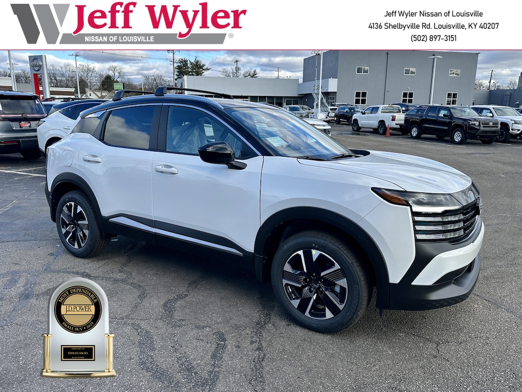 Recent Arrival! Jeff Wyler Nissan of Louisville is delighted to offer this wonderful-looking 2026 Nissan Kicks SV in Aspen White Tricoat/Super Black. Well equipped with: Cold Weather Package (Heated Front Seats, Heated Mirrors, and Rear Floor Heater Ducts), 17" Alloy Wheels, 2-Tone Premium Paint, 4 Speakers, 4-Wheel Disc Brakes, ABS brakes, Air Conditioning, Alloy wheels, AM/FM radio, Auto High-beam Headlights, Automatic temperature control, Blind Spot Warning, Brake assist, Bumpers: body-color, Carpeted Floor Mats, Cloth Seat Trim, Crossbars, Driver door bin, Driver vanity mirror, Dual front impact airbags, Dual front side impact airbags, Electronic Stability Control, Emergency communication system, Exterior Ground Lighting w/Logo, Exterior Parking Camera Rear, Four wheel independent suspension, Front anti-roll bar, Front Bucket Seats, Front Center Armrest, Front reading lights, Fully automatic headlights, Illuminated entry, Knee airbag, Low tire pressure warning, NissanConnect featuring Apple CarPlay and Android Auto, Occupant sensing airbag, Outside temperature display, Overhead airbag, Panic alarm, Passenger door bin, Passenger vanity mirror, Power door mirrors, Power steering, Power windows, Radio data system, Radio: AM/FM/SiriusXM Audio System, Rear anti-roll bar, Rear reading lights, Rear side impact airbag, Rear window defroster, Rear window wiper, Remote keyless entry, Security system, Speed control, Speed-sensing steering, Splash Guards, Split folding rear seat, Spoiler, Sport steering wheel, Steering wheel mounted audio controls, Tachometer, Telescoping steering wheel, Tilt steering wheel, Traction control, Trip computer, and Variably intermittent wipers.2026 Nissan Kicks SV Aspen White Tricoat/Super Black Wyler Family First Package Includes: NanoCure Appearance Protection: Exterior & Interior Chemical Sealant Applied to Protect Against Environmental Hazards (7 Year Warranty Coverage). Pulse- Rear end Collision Avoidance System Theft Deterrent Strategy gives you 5 Years of Coverage against vehicle Theft, Offering up to a $5,000 benefit. Customer's May Not Qualify for All Rebates. Prices Do Not Include Tax, License. $1000 - Nissan Customer Cash. Exp. 02/02/2026 $500 - Nissan MWR MY26 Kicks Bonus Cash - January . Exp. 02/02/2026
