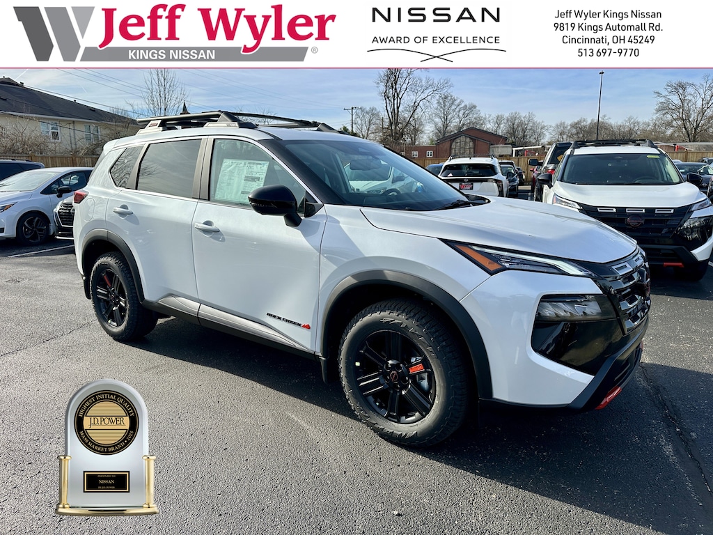 Jeff Wyler Kings Nissan is very proud to offer this handsome 2026 Nissan Rogue Rock Creek in Everest White Pearl Tricoat. Well equipped with: AWD, 4-Wheel Disc Brakes, 6 Speakers, ABS brakes, Air Conditioning, Alloy wheels, AM/FM radio: Sirius, Apple CarPlay/Android Auto, Auto High-beam Headlights, Automatic temperature control, Brake assist, Delay-off headlights, Driver door bin, Driver vanity mirror, Dual front impact airbags, Dual front side impact airbags, Electronic Stability Control, Emergency communication system: NissanConnect Services, Four wheel independent suspension, Front anti-roll bar, Front Bucket Seats, Front Center Armrest, Front dual zone A/C, Front reading lights, Fully automatic headlights, Heated door mirrors, Illuminated entry, Knee airbag, Low tire pressure warning, Occupant sensing airbag, Outside temperature display, Overhead airbag, Overhead console, Panic alarm, Passenger door bin, Passenger vanity mirror, Power door mirrors, Power driver seat, Power Liftgate, Power steering, Power windows, Premium Paint, Radio data system, Radio: AM/FM NissanConnect, Rear anti-roll bar, Rear seat center armrest, Rear side impact airbag, Rear window defroster, Rear window wiper, Remote keyless entry, Retractable Cargo Cover, Speed control, Speed-sensing steering, Speed-Sensitive Wipers, Split folding rear seat, Spoiler, Steering wheel mounted audio controls, Tachometer, Telescoping steering wheel, Tilt steering wheel, Traction control, Trip computer, and Variably intermittent wipers. 27/32 City/Highway MPGWyler Family First Package Includes: NanoCure Appearance Protection: Exterior & Interior Chemical Sealant Applied to Protect Against Environmental Hazards (7 Year Warranty Coverage). Pulse- Rear end Collision Avoidance System Theft Deterrent Strategy gives you 5 Years of Coverage against vehicle Theft, Offering up to a $5,000 benefit. Used vehicles 10 years of age or newer with less than 100,000 miles are eligible for the Wyler Assurance Program, but eligible vehicles must pass our reconditioning process and multi-point inspection. Provided the vehicle passes inspection, vehicles will be eligible for the 6 month/6,000 mile limited warranty. The 6 month/6,000 mile limited warranty is NOT available on AS-IS vehicles, wholesale vehicles, lease buyback/pass-thru vehicles or un-inspected vehicles. Note that this program can also apply to vehicles where the remaining factory coverage is less than 6 months or 6,000 miles. Please check the Federal Trade Commission (FTC) Buyers guide on the vehicle for full details as to whether or not warranty coverage may apply. Contact Dealer for additional details. The Wyler Assurance 6 month/6,000 Mile limited warranty ends 6 months from the date of the Retail Purchase Agreement (BUYERS ORDER) or when the vehicle's odometer registers 6,000 additional miles to the mileage listed on the BUYERS ORDER, whichever comes first. Your Deductible - The warranty holder on your contract pays the first $100 of each covered repair. Price includes: $3500 - Nissan Customer Cash. Exp. 02/02/2026