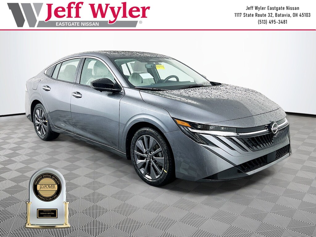 Gun Metallic 2026 Nissan Sentra SL 2.0L I4 DOHC FWD CVT with Xtronic 30/38 City/Highway MPG Jeff Wyler Eastgate Auto Mall is honored to offer this great-looking 2026 Nissan Sentra SL in Gun Metallic. Well equipped with: Floor Mat Package, 17" Machined Alloy Wheels, 4-Wheel Disc Brakes, 8 Speakers, ABS brakes, Air Conditioning, Alloy wheels, AM/FM radio: Sirius, Auto High-beam Headlights, Auto-dimming Rear-View mirror, Automatic temperature control, Brake assist, Bumpers: body-color, Delay-off headlights, Driver door bin, Driver vanity mirror, Dual front impact airbags, Dual front side impact airbags, Electronic Stability Control, Emergency communication system: NissanConnect(R) Services powered by SiriusXM(R), Four wheel independent suspension, Front anti-roll bar, Front Bucket Seats, Front Center Armrest, Front dual zone A/C, Front reading lights, Fully automatic headlights, Garage door transmitter, Heated door mirrors, Heated Front Bucket Seats, Heated front seats, Heated steering wheel, Illuminated entry, Illuminated Kick Plates, Knee airbag, Leather steering wheel, Low tire pressure warning, Occupant sensing airbag, Outside temperature display, Overhead airbag, Overhead console, Panic alarm, Passenger door bin, Passenger vanity mirror, Power door mirrors, Power driver seat, Power moonroof, Power steering, Power windows, Quilted TailorFit Synthetic Leather Seat Trim, Radio data system, Radio: AM/FM with RDS/MP3, Rear anti-roll bar, Rear seat center armrest, Rear side impact airbag, Rear window defroster, Remote keyless entry, Security system, Speed control, Speed-sensing steering, Split folding rear seat, Steering wheel mounted audio controls, Tachometer, Telescoping steering wheel, Tilt steering wheel, Traction control, Trip computer, Turn signal indicator mirrors, Variably intermittent wipers, and Wireless Apple CarPlay/Wireless Android Auto. 30/38 City/Highway MPG Price includes: $500 - Nissan MY26 Sentra Customer Cash (All Markets) - March. Exp. 03/31/2026