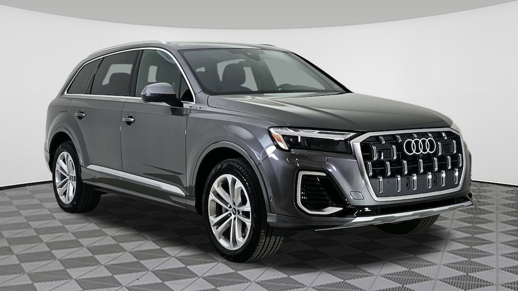 Samurai Gray Metallic 2025 Audi Q7 55 Premium Plus quattro quattro 8-Speed Automatic with Tiptronic 3.0L TFSI Audi Beam Rings, Bang & Olufsen Premium Sound System with 3D Sound, Convenience Package, Illuminated Door Sills, LED Interior Lighting Package Plus, Premium Plus Package, Wheels: 20" 5-Double-Spoke.