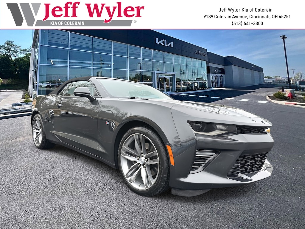 Jeff Wyler Kia of Colerain is honored to offer this handsome 2017 Chevrolet Camaro SS in Nightfall Gray Metallic. Adrenaline Red Interior Accent Trim Package, Preferred Equipment Group 2SS, 2 USB Ports & Auxiliary Input Jack, 2.77 Rear Axle Ratio, 4-Wheel Disc Brakes, 7 Speakers, ABS brakes, Air Conditioning, Alloy wheels, AM/FM radio: SiriusXM, Apple CarPlay/Android Auto, Auto-dimming door mirrors, Auto-dimming Rear-View mirror, Automatic temperature control, Bose Premium 7-Speaker Audio System Feature, Brake assist, Bumpers: body-color, Compass, Convertible, Delay-off headlights, Driver door bin, Driver vanity mirror, Dual front impact airbags, Dual front side impact airbags, Dual Mode Performance Exhaust, Electronic Stability Control, Emergency communication system, Exterior Parking Camera Rear, Four wheel independent suspension, Front anti-roll bar, Front Bucket Seats, Front Center Armrest, Front dual zone A/C, Front fog lights, Front reading lights, Front Sport Bucket Seats, Fully automatic headlights, Garage door transmitter, Glass rear window, Heads-Up Display, Heated door mirrors, Heated front seats, Heated steering wheel, High-Intensity Discharge Headlights, Illuminated entry, Knee airbag, Leather Shift Knob, Leather-Trimmed Seat Trim, Low tire pressure warning, Memory seat, Occupant sensing airbag, Outside temperature display, Paddle-Shift Manual Controls, Panic alarm, Passenger door bin, Passenger vanity mirror, Power convertible roof, Power door mirrors, Power driver seat, Power passenger seat, Power steering, Power windows, Premium audio system: Chevrolet MyLink, Radio data system, Radio: Chevrolet MyLink Audio System, Radio: Chevrolet MyLink w/Navigation, Rear anti-roll bar, Rear window defroster, Remote keyless entry, Remote Vehicle Starter System, Security system, SiriusXM Satellite Radio, Speed control, Speed-sensing steering, Spoiler, Steering wheel mounted audio controls, Tachometer, Telescoping steering wheel, Tilt steering wheel, Traction control, Transmission Oil Cooler, Trip computer, Variably intermittent wipers, Ventilated front seats, Voltmeter, Wheels: 20" x 8.5" Fr & 20" x 9.5" Rr 5-Spoke Alum, and Wheels: 20" x 8.5" Fr & 20" x 9.5" Rr Gray-Painted Our PRE-OWNED vehicles are put through a rigorous 167- POINT QUALITY ASSURANCE INSPECTION along with an average amount of over $1,400.00 SPENT to recondition each vehicle so we can be sure to deliver you the highest quality vehicle like you deserve! ***ONLINE PRICE DOES NOT INCLUDE WYLER FAMILY FIRST PACKAGE***