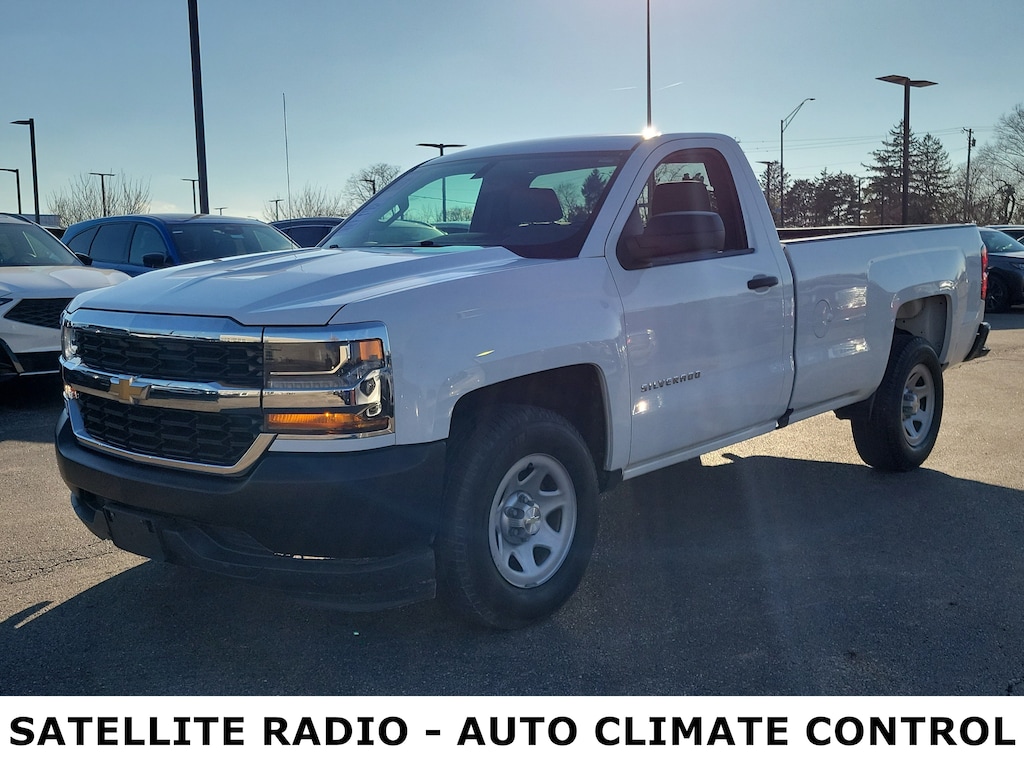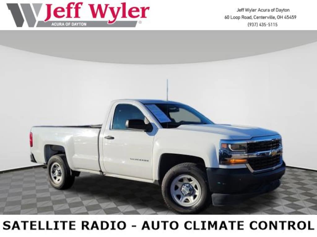 Jeff Wyler Acura of Dayton is honored to offer this hard-working 2017 Chevrolet Silverado 1500 WT in Summit White. Trailering Package (Heavy-Duty Rear Locking Differential), 6-Speed Automatic Electronic with Overdrive, Dark Ash With Jet Black Interior Accents Cloth, 110-Volt AC Power Outlet, 150 Amp Alternator, 3.23 Rear Axle Ratio, 4-Wheel Disc Brakes, 40/20/40 Front Split Bench Seat, 6 Speaker Audio System, ABS brakes, Air Conditioning, AM/FM radio, Black Power Adjustable Heated Outside Mirrors, Bluetooth® For Phone, Brake assist, Chrome Grille Surround, Cloth Seat Trim, Deep-Tinted Glass, Delay-off headlights, Driver door bin, Driver Information Center, Dual front impact airbags, Dual front side impact airbags, E85 FlexFuel Capable, Electronic Stability Control, Front anti-roll bar, Front Center Armrest w/Storage, Front Chrome Bumper, Front License Plate Kit, Front reading lights, Front wheel independent suspension, Fully automatic headlights, Graphite-Colored Rubberized-Vinyl Floor Covering, Heavy Duty Suspension, High-Intensity Discharge Headlights, Low tire pressure warning, Manual Tilt Wheel Steering Column, Occupant sensing airbag, OnStar 3 Months Guidance Plan, OnStar w/4G LTE, Overhead airbag, Overhead console, Passenger door bin, Passenger vanity mirror, Power steering, Power Windows w/Driver Express Up, Radio data system, Radio: AM/FM w/7" Diagonal Color Touch Screen, Rear Chrome Bumper, Rear step bumper, Rear Vision Camera, Remote Keyless Entry, Remote Locking Tailgate, Speed control, Speed-sensing steering, Tachometer, Tilt steering wheel, Traction control, Trip computer, Variably intermittent wipers, and Voltmeter Our PRE-OWNED vehicles are put through a rigorous 167- POINT QUALITY ASSURANCE INSPECTION along with an average amount of over $1,400.00 SPENT to recondition each vehicle so we can be sure to deliver you the highest quality vehicle like you deserve! ***ONLINE PRICE DOES NOT INCLUDE WYLER FAMILY FIRST PACKAGE*** CARFAX One-Owner. Clean CARFAX.