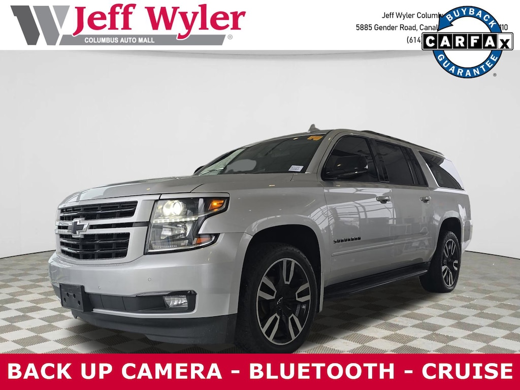 2019 Chevrolet Suburban Silver Ice Metallic EcoTec3 6.2L V8 10-Speed Automatic with Overdrive Premier 4WD Clean CARFAX.Awards: * JD Power Dependability StudyCome visit the all new Jeff Wyler Chevrolet of Columbus the official Home of the Fresh Start Program! See how easy it is drive your new vehicle home today.