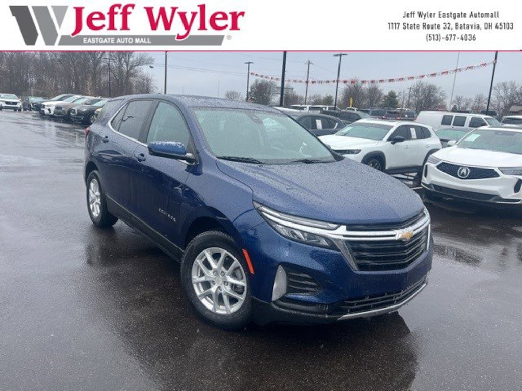 Jeff Wyler Eastgate Auto Mall is pleased to offer this great 2022 Chevrolet Equinox LT in Blue Glow Metallic. Well equipped with: Preferred Equipment Group 1LT, 17" Aluminum Wheels, 2 Rear USB Charging-Only Ports, 2 USB Ports & Auxiliary Input Jack, 2-Way Power Driver Lumbar Control Seat Adjuster, 3.50 Final Drive Axle Ratio, 4-Wheel Disc Brakes, 6 Speaker Audio System Feature, 6 Speakers, 8-Way Power Driver Seat Adjuster, ABS brakes, Air Conditioning, Alloy wheels, AM/FM radio: SiriusXM, Auto High-beam Headlights, Bluetooth® For Phone, Brake assist, Bumpers: body-color, Compass, Delay-off headlights, Driver door bin, Driver vanity mirror, Dual front impact airbags, Dual front side impact airbags, Electronic Stability Control, Emergency communication system: OnStar and Chevrolet connected services capable, Four wheel independent suspension, Front anti-roll bar, Front Bucket Seats, Front Center Armrest, Front Passenger 4-Way Manual Seat Adjuster, Front reading lights, Fully automatic headlights, Heated door mirrors, Illuminated entry, Low tire pressure warning, Occupant sensing airbag, Outside temperature display, Overhead airbag, Overhead console, Panic alarm, Passenger door bin, Passenger vanity mirror, Power door mirrors, Power driver seat, Power steering, Power windows, Premium audio system: Chevrolet Infotainment 3, Premium Cloth Seat Trim, Radio data system, Radio: Chevrolet Infotainment 3 System w/AM/FM, Rear anti-roll bar, Rear reading lights, Rear seat center armrest, Rear window defroster, Rear window wiper, Remote keyless entry, Security system, SiriusXM Radio, Speed control, Speed-sensing steering, Split folding rear seat, Spoiler, Steering wheel mounted audio controls, Tachometer, Telescoping steering wheel, Tilt steering wheel, Traction control, Trip computer, Variably intermittent wipers, and Wireless Apple CarPlay/Wireless Android Auto. Clean CARFAX. Ask about available certifications. Used vehicles 10 years of age or newer with less than 100,000 miles are eligible for the Wyler Assurance Program, but eligible vehicles must pass our reconditioning process and multi-point inspection. Provided the vehicle passes inspection, vehicles will be eligible for the 6 month/6,000 mile limited warranty. The 6 month/6,000 mile limited warranty is NOT available on AS-IS vehicles, wholesale vehicles, lease buyback/pass-thru vehicles or un-inspected vehicles. Note that this program can also apply to vehicles where the remaining factory coverage is less than 6 months or 6,000 miles. Please check the Federal Trade Commission (FTC) Buyers guide on the vehicle for full details as to whether or not warranty coverage may apply. Contact Dealer for additional details. The Wyler Assurance 6 month/6,000 Mile limited warranty ends 6 months from the date of the Retail Purchase Agreement (BUYERS ORDER) or when the vehicle's odometer registers 6,000 additional miles to the mileage listed on the BUYERS ORDER, whichever comes first. Your Deductible - The warranty holder on your contract pays the first $100 of each covered repair.