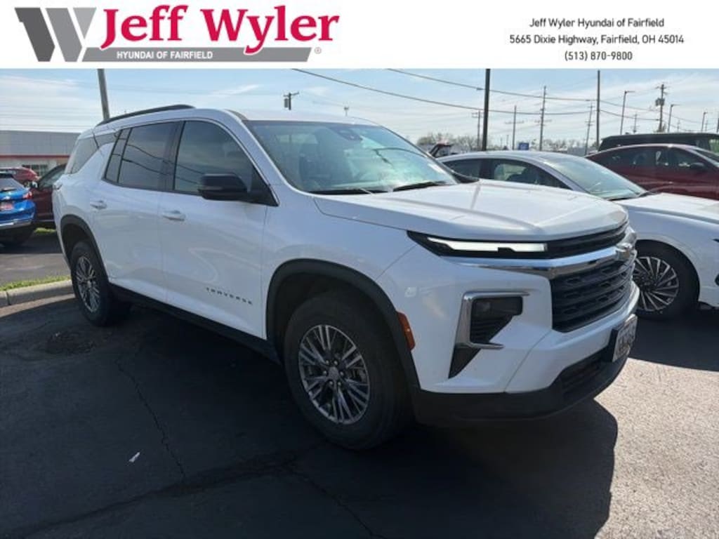 Jeff Wyler Hyundai of Fairfield is proud to offer this outstanding-looking 2025 Chevrolet Traverse LT in Summit White. Well equipped with: Preferred Equipment Group 2LT, AWD, Android Auto, Apple CarPlay, CALL NOW FOR YOUR VIP APPOINTMENT 513-870-9800, FULLY SERVICED w/RECORDS, GUARANTEED FINANCING!! NO MATTER YOUR SITUATION WE CAN GET AN APPROVAL!!, THE #1 Volume dealer in the region! Come see why for yourself Today!!, WE PAY MORE FOR YOUR TRADE!!, 3rd row seats: split-bench, 4-Way Manual Front Passenger Seat Adjuster, 4-Wheel Disc Brakes, 6 Speakers, 6-Speaker Audio System Feature, 8-Way Power Driver Seat Adjuster, ABS brakes, Air Conditioning, Alloy wheels, AM/FM radio: SiriusXM with 360L, Apple CarPlay/Android Auto, Auto High-beam Headlights, Automatic temperature control, Brake assist, Bumpers: body-color, Child-Seat-Sensing Airbag, Compass, Delay-off headlights, Driver door bin, Driver vanity mirror, Dual front impact airbags, Dual front side impact airbags, Electronic Stability Control, Emergency communication system: OnStar, Four wheel independent suspension, Front anti-roll bar, Front Bucket Seats, Front Center Armrest, Front dual zone A/C, Front reading lights, Fully automatic headlights, Heated door mirrors, Heated front seats, Heated steering wheel, Illuminated entry, Low tire pressure warning, Navigation System, Occupant sensing airbag, Outside temperature display, Overhead airbag, Overhead console, Panic alarm, Passenger door bin, Passenger vanity mirror, Power door mirrors, Power driver seat, Power Liftgate, Power steering, Power windows, Premium Cloth Seat Trim, Radio data system, Radio: : Audio System w/17.7" Diagonal Display, Rear air conditioning, Rear anti-roll bar, Rear reading lights, Rear window defroster, Rear window wiper, Remote keyless entry, Security system, SiriusXM with 360L Trial Subscription, Speed control, Speed-sensing steering, Spoiler, Steering wheel mounted audio controls, Tachometer, Telescoping steering wheel, Tilt steering wheel, Traction control, Trip computer, Turn signal indicator mirrors, Variably intermittent wipers, Voltmeter, and Wheels: 18" Grazen Metallic Machined-Face Aluminum. TO CHECK ON THE AVAILABILITY OF THIS VEHICLE REACH OUT TO ONE OF OUR TEAM MEMBERS!! ALSO SHOP ONLINE AT https://www.jeffwylerhyundaioffairfield.com/ Proudly Serving: Cincinnati, Dayton, Columbus, Louisville, Lexington, Indianapolis, Hamilton, Florence, Alexandria, Beavercreek, Springdale, West Chester, Monroe, Fairfield, Kenwood, Newport and all of greater Cincinnati Ohio, Indiana, and Northern Kentucky.