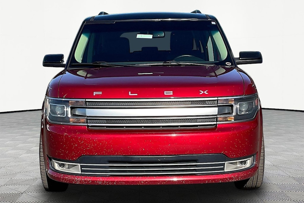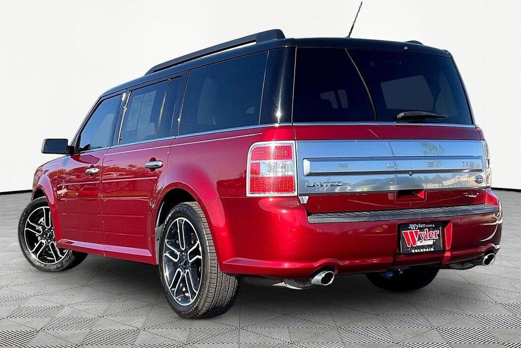 Jeff Wyler Hyundai of Colerain is very proud to offer this terrific-looking 2014 Ford Flex Limited in Ruby Red Metallic. Well equipped with: Appearance Package (Black Painted Roof, Exterior Mirror Caps Painted Black, Floor Mats w/Unique Logo, Leather-Trimmed Bucket Seats w/Perforated Inserts, Leather-Wrapped Steering Wheel, and Wheels: 20" Machined Aluminum Face), Equipment Group 301A (1-Touch PowerFold & Tumble 3rd Row Fold Flat Bench, 10-Way Power Heated Cooled Driver/Passenger Seat, Active Park Assist, Adaptive Cruise Control w/Collision Mitigation, and Power Tilt & Telescopic Steering Column), 12 Speakers, 19" Painted Aluminum Wheels, 3.39 Axle Ratio, 3rd row seats: split-bench, 4-Wheel Disc Brakes, ABS brakes, Adjustable pedals, Air Conditioning, All-Weather Floor Mats, Alloy wheels, AM/FM radio: SiriusXM, Auto-dimming Rear-View mirror, Automatic temperature control, Brake assist, Bumpers: body-color, CD player, Compass, Delay-off headlights, Driver door bin, Driver vanity mirror, Dual front impact airbags, Dual front side impact airbags, DVD Headrest (Pre-Installed), Electronic Stability Control, Exterior Parking Camera Rear, Four wheel independent suspension, Front anti-roll bar, Front Bucket Seats, Front Center Armrest, Front dual zone A/C, Front fog lights, Front reading lights, Fully automatic headlights, Garage door transmitter, Heated door mirrors, Heated front seats, High-Intensity Discharge Headlights, Illuminated entry, Leather steering wheel, Low tire pressure warning, Memory seat, Navigation System, Occupant sensing airbag, Outside temperature display, Overhead airbag, Overhead console, Panic alarm, Passenger door bin, Passenger vanity mirror, Pedal memory, Perforated Leather-Trimmed Bucket Seats, Power door mirrors, Power driver seat, Power Liftgate, Power passenger seat, Power steering, Power windows, Premium audio system: Sony, Radio data system, Radio: AM/FM/HD Single CD/MP3 Capable, Rain sensing wipers, Rear air conditioning, Rear anti-roll bar, Rear Parking Sensors, Rear reading lights, Rear seat center armrest, Rear window defroster, Rear window wiper, Remote keyless entry, Roof Rack Side Rails, Security system, Speed control, Speed-Sensitive Wipers, Split folding rear seat, Steering wheel mounted audio controls, SYNC w/MyFord Touch & SYNC Services, Tachometer, Telescoping steering wheel, Tilt steering wheel, Traction control, Trip computer, and Variably intermittent wipers. This sales price excludes tax, title, and dealer fees. While every reasonable effort is made to ensure the accuracy of this information, we are not responsible for any errors or omissions contained on these pages. Used vehicles 10 years of age or newer with less than 100,000 miles are eligible for the Wyler Assurance Program, but eligible vehicles must pass our reconditioning process and multi-point inspection. Provided the vehicle passes inspection, vehicles will be eligible for the 6 month/6,000 mile limited warranty. The 6 month/6,000 mile limited warranty is NOT available on AS-IS vehicles, wholesale vehicles, lease buyback/pass-thru vehicles or un-inspected vehicles. Note that this program can also apply to vehicles where the remaining factory coverage is less than 6 months or 6,000 miles. Please check the Federal Trade Commission (FTC) Buyers guide on the vehicle for full details as to whether or not warranty coverage may apply. Contact Dealer for additional details. The Wyler Assurance 6 month/6,000 Mile limited warranty ends 6 months from the date of the Retail Purchase Agreement (BUYERS ORDER) or when the vehicle's odometer registers 6,000 additional miles to the mileage listed on the BUYERS ORDER, whichever comes first.Your Deductible - The warranty holder on your contract pays the first $100 of each covered repair.