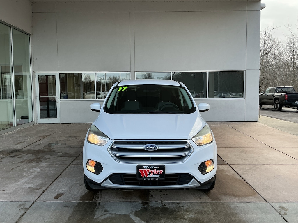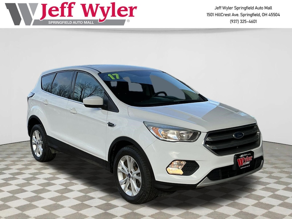 Jeff Wyler Springfield Auto Mall is honored to offer this stunning 2017 Ford Escape SE in Oxford White. Well equipped with: Equipment Group 200A, 3.51 Axle Ratio, 4-Wheel Disc Brakes, 6 Speakers, ABS brakes, Air Conditioning, Alloy wheels, AM/FM radio: SiriusXM, Automatic temperature control, Brake assist, Bumpers: body-color, CD player, Compass, Delay-off headlights, Driver door bin, Driver vanity mirror, Dual front impact airbags, Dual front side impact airbags, Electronic Stability Control, Emergency communication system: 911 Assist, Exterior Parking Camera Rear, Four wheel independent suspension, Front anti-roll bar, Front Bucket Seats, Front Center Armrest, Front dual zone A/C, Front fog lights, Front reading lights, Fully automatic headlights, Illuminated entry, Knee airbag, Low tire pressure warning, Occupant sensing airbag, Outside temperature display, Overhead airbag, Overhead console, Panic alarm, Passenger door bin, Passenger vanity mirror, Power door mirrors, Power driver seat, Power steering, Power windows, Radio data system, Radio: AM/FM Single CD/MP3, Rear anti-roll bar, Rear seat center armrest, Rear window defroster, Rear window wiper, Remote keyless entry, Speed control, Speed-sensing steering, Split folding rear seat, Steering wheel mounted audio controls, SYNC Communications & Entertainment System, Tachometer, Telescoping steering wheel, Tilt steering wheel, Traction control, Trip computer, Unique Cloth Buckets w/60/40 Split Rear Seat, Variably intermittent wipers, and Wheels: 17" Sparkle Silver Painted Aluminum. Awards: * 2017 KBB.com 10 Best SUVs Under $25,000 * 2017 KBB.com 10 Best Used Compact SUVs Under $15,000 * 2017 KBB.com Brand Image Awards * 2017 KBB.com 10 Most Awarded Brands Reviews: * Optional 2.0-liter turbocharged engine provides quick acceleration; high-tech features include Sync 3 infotainment, Apple CarPlay and Android Auto; responsive steering and carlike handling around turns. Source: EdmundsAsk about available certifications. Used vehicles 10 years of age or newer with less than 100,000 miles are eligible for the Wyler Assurance Program, but eligible vehicles must pass our reconditioning process and multi-point inspection. Provided the vehicle passes inspection, vehicles will be eligible for the 6 month/6,000 mile limited warranty. The 6 month/6,000 mile limited warranty is NOT available on AS-IS vehicles, wholesale vehicles, lease buyback/pass-thru vehicles or un-inspected vehicles. Note that this program can also apply to vehicles where the remaining factory coverage is less than 6 months or 6,000 miles. Please check the Federal Trade Commission (FTC) Buyers guide on the vehicle for full details as to whether or not warranty coverage may apply. Contact Dealer for additional details. The Wyler Assurance 6 month/6,000 Mile limited warranty ends 6 months from the date of the Retail Purchase Agreement (BUYERS ORDER) or when the vehicle's odometer registers 6,000 additional miles to the mileage listed on the BUYERS ORDER, whichever comes first. Your Deductible - The warranty holder on your contract pays the first $100 of each covered repair.
