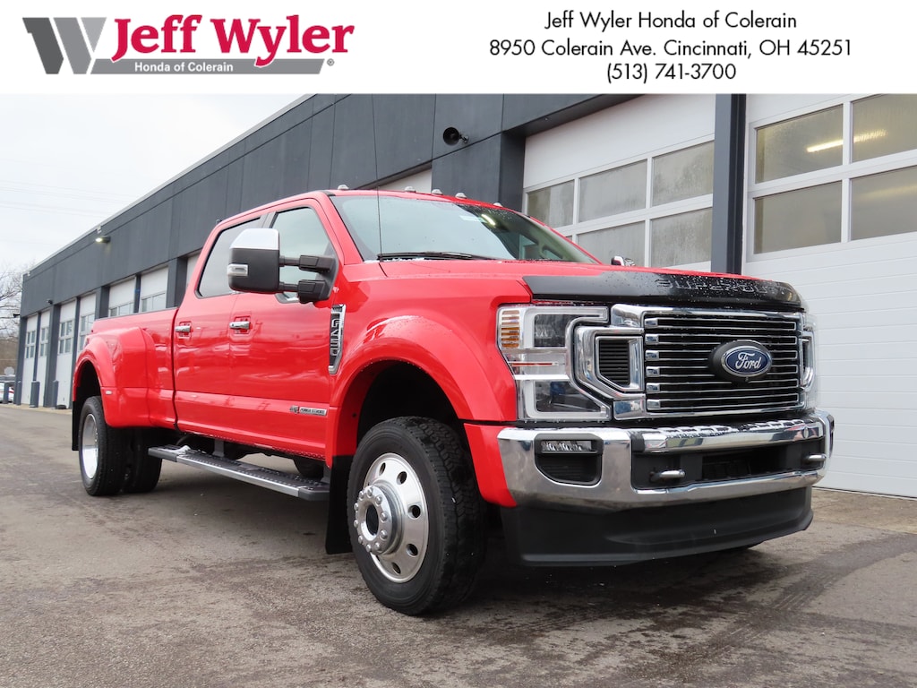 Jeff Wyler Honda of Colerain is honored to offer this terrific 2021 Ford F-450SD Lariat in Race Red. Well equipped with: GVWR: 14,000 lb Payload Package, ABS brakes, Alloy wheels, Compass, Electronic Stability Control, Traction control, 19.5" Forged Polished Aluminum Wheels, 4-Wheel Disc Brakes, Air Conditioning, Brake assist, Delay-off headlights, Dual front impact airbags, Dual front side impact airbags, Dual rear wheels, Exterior Parking Camera Rear, Front anti-roll bar, Front reading lights, Fully automatic headlights, Limited Slip w/4.30 Axle Ratio, Outside temperature display, Overhead airbag, Overhead console, Passenger vanity mirror, Power steering, Rear anti-roll bar, Rear reading lights, Rear step bumper, Split folding rear seat, Steering wheel mounted audio controls, Tachometer, Telescoping steering wheel, Tilt steering wheel, Trip computer, and Variably intermittent wipers.