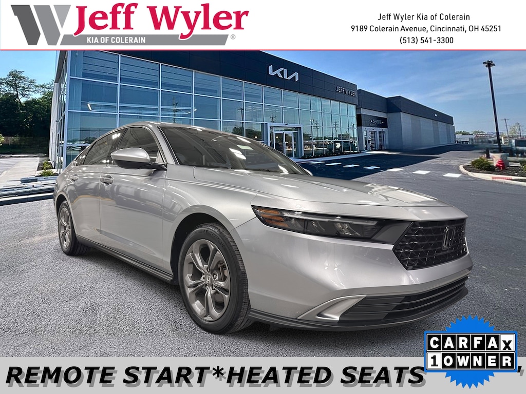 Jeff Wyler Kia of Colerain is honored to offer this good-looking 2024 Honda Accord EX in Solar Silver Metallic. 4-Wheel Disc Brakes, 8 Speakers, ABS brakes, Adaptive Cruise Control: Adaptive Cruise Control (ACC) with Low-Speed Follow, Air Conditioning, Alloy wheels, AM/FM radio, Apple CarPlay/Android Auto, Auto High-beam Headlights, Auto-dimming Rear-View mirror, Automatic temperature control, Blind Spot Information (BSI) System warning, Brake assist, Bumpers: body-color, Compass, Delay-off headlights, Driver door bin, Driver vanity mirror, Dual front impact airbags, Dual front side impact airbags, Electronic Stability Control, Emergency communication system: HondaLink Assist, Exterior Parking Camera Rear, Fabric Seat Trim, Four wheel independent suspension, Front anti-roll bar, Front Bucket Seats, Front Center Armrest, Front dual zone A/C, Front reading lights, Fully automatic headlights, Heated Front Bucket Seats, Heated front seats, Illuminated entry, Knee airbag, Lane departure: Lane Keeping Assist System (LKAS) active, Low tire pressure warning, Occupant sensing airbag, Outside temperature display, Overhead airbag, Overhead console, Panic alarm, Passenger door bin, Passenger vanity mirror, Power door mirrors, Power driver seat, Power moonroof, Power steering, Power windows, Radio data system, Radio: 180-Watt AM/FM Audio System, Rear anti-roll bar, Rear reading lights, Rear seat center armrest, Rear side impact airbag, Rear window defroster, Remote keyless entry, Security system, Speed control, Speed-sensing steering, Speed-Sensitive Wipers, Split folding rear seat, Steering wheel mounted audio controls, Tachometer, Telescoping steering wheel, Tilt steering wheel, Traction control, Trip computer, Variably intermittent wipers, and Wheels: 17" x 7.5" Pewter Gray Our PRE-OWNED vehicles are put through a rigorous 167- POINT QUALITY ASSURANCE INSPECTION along with an average amount of over $1,400.00 SPENT to recondition each vehicle so we can be sure to deliver you the highest quality vehicle like you deserve! ***ONLINE PRICE DOES NOT INCLUDE WYLER FAMILY FIRST PACKAGE***