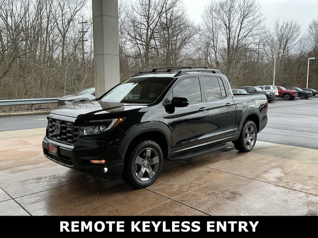 Jeff Wyler Springfield Auto Mall is pumped up to offer this superb 2024 Honda Ridgeline TrailSport in Black. Well equipped with: 4-Wheel Disc Brakes, 4.33 Axle Ratio, 7 Speakers, ABS brakes, Air Conditioning, Alloy wheels, AM/FM radio: SiriusXM, Auto-dimming Rear-View mirror, Automatic temperature control, Blind Spot Information (BSI) System warning, Bluetooth® Hands-Free Link, Brake assist, Bumpers: body-color, Compass, Delay-off headlights, Driver door bin, Driver vanity mirror, Driver's Seat Mounted Armrest, Dual front impact airbags, Dual front side impact airbags, Electronic Stability Control, Emergency communication system: HondaLink Assist, Exterior Parking Camera Rear, Four wheel independent suspension, Front anti-roll bar, Front Bucket Seats, Front dual zone A/C, Front fog lights, Front reading lights, Fully automatic headlights, Garage door transmitter: HomeLink, Heated door mirrors, Heated Front Bucket Seats, Heated front seats, Honda Satellite-Linked Navigation System, Illuminated entry, Leather steering wheel, Leatherette Seat Trim, Low tire pressure warning, Memory seat, Navigation system: Honda Satellite-Linked Navigation System, Occupant sensing airbag, Outside temperature display, Overhead airbag, Overhead console, Panic alarm, Passenger door bin, Passenger seat mounted armrest, Passenger vanity mirror, Power door mirrors, Power driver seat, Power moonroof, Power passenger seat, Power steering, Power windows, Radio data system, Radio: 215-Watt Audio System w/7 Speakers, Rear air conditioning, Rear anti-roll bar, Rear reading lights, Rear seat center armrest, Rear step bumper, Rear window defroster, Remote keyless entry, Security system, SiriusXM, Speed control, Speed-sensing steering, Split folding rear seat, Steering wheel mounted audio controls, Tachometer, Telescoping steering wheel, Tilt steering wheel, Traction control, Trip computer, Turn signal indicator mirrors, Variably intermittent wipers, Wheels: 18" TrailSport Pewter Gray Alloy, and Wireless Apple CarPlay/Wireless Android Auto. Ask about available certifications. Used vehicles 10 years of age or newer with less than 100,000 miles are eligible for the Wyler Assurance Program, but eligible vehicles must pass our reconditioning process and multi-point inspection. Provided the vehicle passes inspection, vehicles will be eligible for the 6 month/6,000 mile limited warranty. The 6 month/6,000 mile limited warranty is NOT available on AS-IS vehicles, wholesale vehicles, lease buyback/pass-thru vehicles or un-inspected vehicles. Note that this program can also apply to vehicles where the remaining factory coverage is less than 6 months or 6,000 miles. Please check the Federal Trade Commission (FTC) Buyers guide on the vehicle for full details as to whether or not warranty coverage may apply. Contact Dealer for additional details. The Wyler Assurance 6 month/6,000 Mile limited warranty ends 6 months from the date of the Retail Purchase Agreement (BUYERS ORDER) or when the vehicle's odometer registers 6,000 additional miles to the mileage listed on the BUYERS ORDER, whichever comes first. Your Deductible - The warranty holder on your contract pays the first $100 of each covered repair.