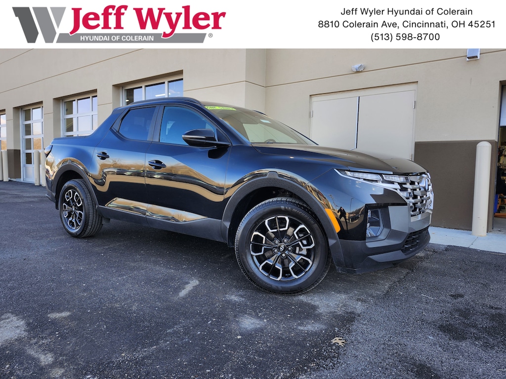 Jeff Wyler Superior Hyundai is excited to offer this wonderful-looking 2023 Hyundai Santa Cruz SEL Premium in Phantom Black. Well equipped with: Option Group 01, 18" x 7.5J Alloy Wheels, 3.316 Axle Ratio, 4-Wheel Disc Brakes, 6 Speakers, ABS brakes, Air Conditioning, Alloy wheels, AM/FM radio: SiriusXM, Apple CarPlay & Android Auto, Auto High-beam Headlights, Auto-dimming Rear-View mirror, Auto-leveling suspension, Automatic temperature control, Bed Cargo Net, Brake assist, Bumpers: body-color, Carpeted Floor Mats, Delay-off headlights, Driver door bin, Driver vanity mirror, Dual front impact airbags, Dual front side impact airbags, Electronic Stability Control, Emergency communication system: Blue Link Connected Car Service (3-year complimentary subscription), Exterior Parking Camera Rear, First Aid Kit, Fitted Liners, Four wheel independent suspension, Front anti-roll bar, Front Bucket Seats, Front Center Armrest, Front dual zone A/C, Front reading lights, Fully automatic headlights, Heated door mirrors, Heated Front Bucket Seats, Heated front seats, Illuminated entry, Leather Shift Knob, Low tire pressure warning, Mudguards, Navigation System, Occupant sensing airbag, Outside temperature display, Overhead airbag, Overhead console, Panic alarm, Passenger door bin, Passenger vanity mirror, Power door mirrors, Power driver seat, Power moonroof, Power steering, Power windows, Radio data system, Radio: AM/FM/HD Audio System, Rear anti-roll bar, Rear step bumper, Rear window defroster, Remote keyless entry, Security system, Speed control, Speed-sensing steering, Split folding rear seat, Spoiler, Stain & Odor Resistant Cloth Seat Trim, Steering wheel mounted audio controls, Tachometer, Telescoping steering wheel, Tilt steering wheel, Traction control, Trip computer, Turn signal indicator mirrors, Variably intermittent wipers, and Wheel Locks. CARFAX One-Owner. Clean CARFAX. This sales price excludes tax, title, and dealer fees. While every reasonable effort is made to ensure the accuracy of this information, we are not responsible for any errors or omissions contained on these pages. Used vehicles 10 years of age or newer with less than 100,000 miles are eligible for the Wyler Assurance Program, but eligible vehicles must pass our reconditioning process and multi-point inspection. Provided the vehicle passes inspection, vehicles will be eligible for the 6 month/6,000 mile limited warranty. The 6 month/6,000 mile limited warranty is NOT available on AS-IS vehicles, wholesale vehicles, lease buyback/pass-thru vehicles or un-inspected vehicles. Note that this program can also apply to vehicles where the remaining factory coverage is less than 6 months or 6,000 miles. Please check the Federal Trade Commission (FTC) Buyers guide on the vehicle for full details as to whether or not warranty coverage may apply. Contact Dealer for additional details. The Wyler Assurance 6 month/6,000 Mile limited warranty ends 6 months from the date of the Retail Purchase Agreement (BUYERS ORDER) or when the vehicle's odometer registers 6,000 additional miles to the mileage listed on the BUYERS ORDER, whichever comes first.Your Deductible - The warranty holder on your contract pays the first $100 of each covered repair.