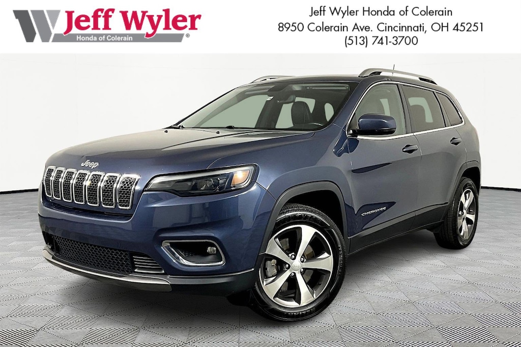 Jeff Wyler Honda of Colerain is honored to offer this wonderful 2020 Jeep Cherokee Limited in Slate Blue Pearlcoat. Well equipped with: Quick Order Package 26G, 1-Year SiriusXM Guardian Trial, 10 Speakers, 3.251 Axle Ratio, 4-Wheel Disc Brakes, 4G LTE Wi-Fi Hot Spot, 5-Year SiriusXM Traffic Service, 5-Year SiriusXM Travel Link Service, 8.4" Touchscreen Display, ABS brakes, Air Conditioning, Alloy wheels, AM/FM radio: SiriusXM, Anti-whiplash front head restraints, Apple CarPlay, Apple CarPlay/Android Auto, Audio memory, Auto-dimming Rear-View mirror, Automatic temperature control, AutoStick Automatic Transmission, Auxiliary Transmission Oil Cooler, Brake assist, Bumpers: body-color, Compass, Delay-off headlights, Driver door bin, Driver vanity mirror, Dual Bright Exhaust Tips, Dual front impact airbags, Dual front side impact airbags, Electronic Stability Control, Engine Oil Cooler, Exterior Mirrors Courtesy Lamps, Exterior Mirrors w/Supplemental Signals, For Details Visit DriveUconnect.com, Four wheel independent suspension, Front anti-roll bar, Front Bucket Seats, Front Center Armrest, Front dual zone A/C, Front fog lights, Front reading lights, Fully automatic headlights, Garage door transmitter, Google Android Auto, GPS Antenna Input, GPS Navigation, HD Radio, Heated door mirrors, Heated front seats, Heated steering wheel, Illuminated entry, Integrated Voice Command w/Bluetooth, Knee airbag, Leather Shift Knob, Low tire pressure warning, Memory seat, Normal Duty Suspension, Occupant sensing airbag, Outside temperature display, Overhead airbag, Overhead console, Panic alarm, ParkView Rear Back-Up Camera, Passenger door bin, Passenger vanity mirror, Power door mirrors, Power driver seat, Power Front/Fixed Rear Full Sunroof, Power Liftgate, Power passenger seat, Power steering, Power windows, Premium Leather Trimmed Bucket Seats, Radio data system, Radio: Uconnect 4 w/8.4" Display, Radio: Uconnect 4C Nav w/8.4" Display, Rear anti-roll bar, Rear reading lights, Rear seat center armrest, Rear side impact airbag, Rear window defroster, Rear window wiper, Remote keyless entry, Roof rack: rails only, Security system, SiriusXM Satellite Radio, SiriusXM Traffic Plus, SiriusXM Travel Link, Speed control, Speed-sensing steering, Split folding rear seat, Spoiler, Steering wheel mounted audio controls, Stop-Start Multiple VSM System, Tachometer, Telescoping steering wheel, Tilt steering wheel, Traction control, Trip computer, Turn signal indicator mirrors, USB Host Flip, Variably intermittent wipers, Voltmeter, and Wheels: 18" x 7.0" Painted Diamond Cut AluminuM.