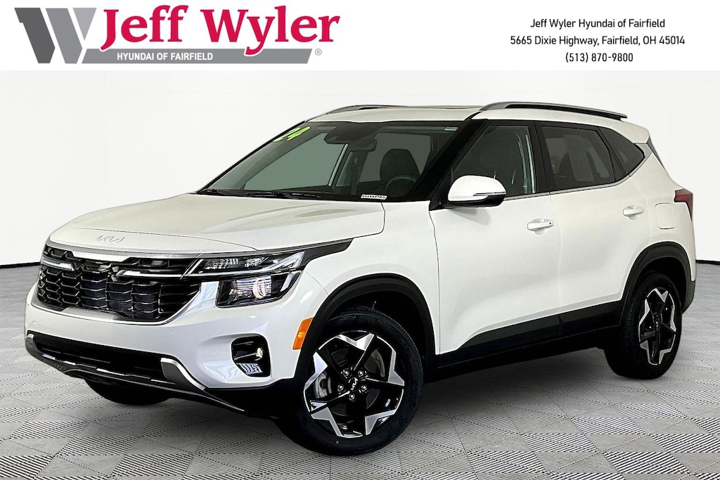 CARFAX One-Owner. Clean CARFAX. Jeff Wyler Hyundai of Fairfield is proud to offer this attractive-looking 2024 Kia Seltos EX in Snow White Pearl. Well equipped with: Android Auto, Apple CarPlay, CALL NOW FOR YOUR VIP APPOINTMENT 513-870-9800, FULLY SERVICED w/RECORDS, GUARANTEED FINANCING!! NO MATTER YOUR SITUATION WE CAN GET AN APPROVAL!!, THE #1 Volume dealer in the region! Come see why for yourself Today!!, WE PAY MORE FOR YOUR TRADE!!, 4-Wheel Disc Brakes, 6 Speakers, 6.052 Axle Ratio, ABS brakes, Air Conditioning, Alloy wheels, AM/FM radio: SiriusXM, Apple CarPlay & Android Auto, Auto High-beam Headlights, Automatic temperature control, Brake assist, Bumpers: body-color, Carpet Floor Mats, Delay-off headlights, Driver door bin, Driver vanity mirror, Dual front impact airbags, Dual front side impact airbags, Electronic Stability Control, Emergency communication system: 911 Connect, Exterior Parking Camera Rear, Four wheel independent suspension, Front anti-roll bar, Front Bucket Seats, Front Center Armrest, Front fog lights, Front reading lights, Fully automatic headlights, Heated door mirrors, Heated Front Bucket Seats, Heated front seats, Illuminated entry, Leather Shift Knob, Leather steering wheel, Low tire pressure warning, Navigation System, Occupant sensing airbag, Outside temperature display, Overhead airbag, Overhead console, Panic alarm, Passenger door bin, Passenger vanity mirror, Power door mirrors, Power driver seat, Power moonroof, Power steering, Power windows, Radio: AM/FM/HD/Satellite Display System w/Navigation, Rear seat center armrest, Rear window defroster, Rear window wiper, Remote keyless entry, Security system, Sofino Premium Leatherette Seat Trim, Speed control, Speed-sensing steering, Split folding rear seat, Spoiler, Steering wheel mounted audio controls, Tachometer, Telescoping steering wheel, Tilt steering wheel, Traction control, Trip computer, Turn signal indicator mirrors, Variably intermittent wipers, and Wheels: 17" Alloy w/Machined Finish. TO CHECK ON THE AVAILABILITY OF THIS VEHICLE REACH OUT TO ONE OF OUR TEAM MEMBERS!! ALSO SHOP ONLINE AT https://www.jeffwylerhyundaioffairfield.com/ Proudly Serving: Cincinnati, Dayton, Columbus, Louisville, Lexington, Indianapolis, Hamilton, Florence, Alexandria, Beavercreek, Springdale, West Chester, Monroe, Fairfield, Kenwood, Newport and all of greater Cincinnati Ohio, Indiana, and Northern Kentucky. New Price!