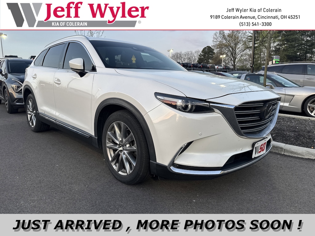 Jeff Wyler Kia of Colerain is proud to offer this handsome 2019 Mazda CX-9 Grand Touring in Snowflake White Pearl Mica. 12 Speakers, 17mm Wheel Locks, 3rd row seats: bench, 4-Wheel Disc Brakes, ABS brakes, Aha Internet Radio, Air Conditioning, Alloy wheels, AM/FM radio: SiriusXM, AppLink/Apple CarPlay and Android Auto, Auto High-beam Headlights, Auto-dimming Rear-View mirror, Automatic temperature control, Axle Ratio: 4.411, Brake assist, Bumpers: body-color, Compass, Delay-off headlights, Driver door bin, Driver vanity mirror, Dual front impact airbags, Dual front side impact airbags, E911 Automatic Emergency Notification, Electronic Stability Control, Emergency communication system: MAZDA CONNECT, Four wheel independent suspension, Front anti-roll bar, Front Bucket Seats, Front Center Armrest, Front dual zone A/C, Front fog lights, Front reading lights, Fully automatic headlights, Garage door transmitter: HomeLink, Heads-Up Display, Heated door mirrors, Heated front seats, Heated rear seats, Heated steering wheel, Heated/Ventilated Front Bucket Seats, Illuminated entry, Infotainment System Voice Command, Leather Shift Knob, Leather steering wheel, Leather-Trimmed Seats, Low tire pressure warning, Mazda Navigation System, Memory seat, Navigation System, Occupant sensing airbag, Outside temperature display, Overhead airbag, Overhead console, Pandora Internet Radio, Panic alarm, Passenger door bin, Passenger vanity mirror, Power door mirrors, Power driver seat, Power Liftgate, Power moonroof, Power passenger seat, Power steering, Power windows, Radio Broadcast Data System Program Information, Radio data system, Radio: AM/FM Sound System w/Bose Audio, Rain sensing wipers, Rear air conditioning, Rear anti-roll bar, Rear reading lights, Rear seat center armrest, Rear window defroster, Rear window wiper, Remote keyless entry, Roof rack: rails only, SiriusXM Satellite Radio, SMS Text Msg Audio Delivery & Reply, Speed control, Speed-sensing steering, Split folding rear seat, Spoiler, Steering wheel mounted audio controls, Stitcher Internet Radio, Tachometer, Telescoping steering wheel, Tilt steering wheel, Traction control, Trip computer, Turn signal indicator mirrors, Variably intermittent wipers, Ventilated front seats, and Wheels: 20" x 8.5J Aluminum Alloy Our PRE-OWNED vehicles are put through a rigorous 167- POINT QUALITY ASSURANCE INSPECTION along with an average amount of over $1,400.00 SPENT to recondition each vehicle so we can be sure to deliver you the highest quality vehicle like you deserve! ***ONLINE PRICE DOES NOT INCLUDE WYLER FAMILY FIRST PACKAGE***