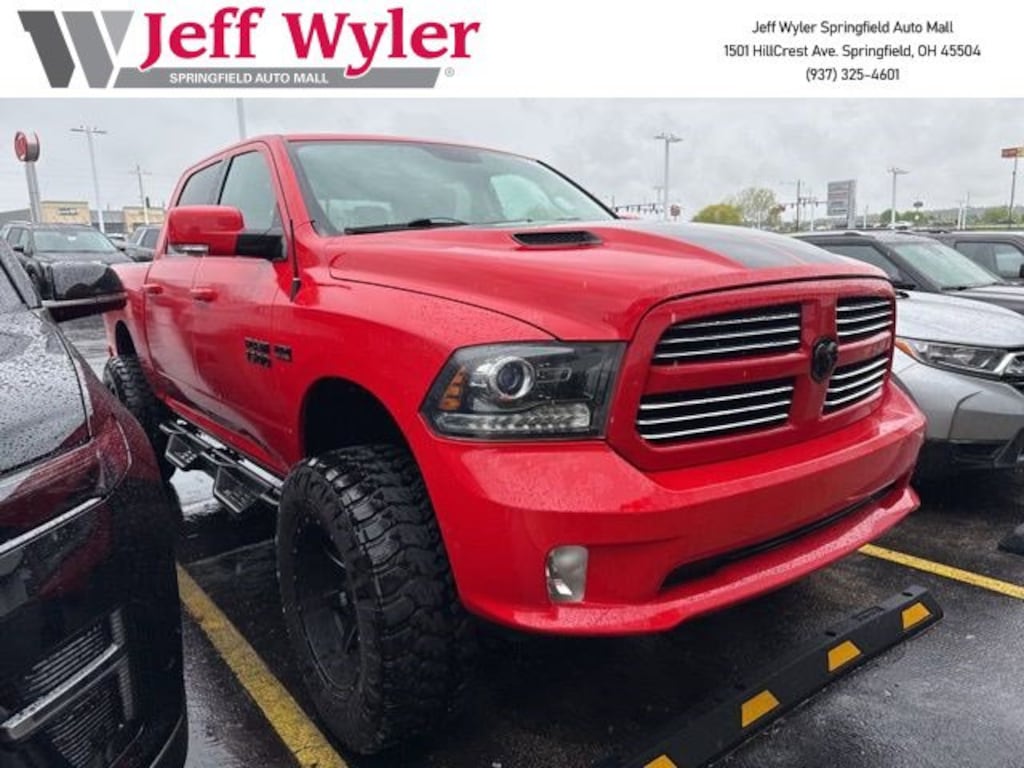 Jeff Wyler Springfield Auto Mall is delighted to offer this charming 2016 Ram 1500 Sport in Torred. Well equipped with: Quick Order Package 26L Sport, Torred Sport Package (DISC) (4x4 Flat Black Badge, Black Ram Head Tailgate Badge, Body Color/Bright Billets Grille, Delete Hemi Badge, Deluxe Cloth High-Back Bucket Seats (DISC), Flat Black 5.7L Hemi Badge, Flat Black Ram 1500 Badge, MOPAR Sport Performance Hood Decal, and Sport Performance Hood), 115V Auxiliary Power Outlet, 20" x 9" Polished Aluminum Wheels, 3.21 Rear Axle Ratio, 4-Wheel Disc Brakes, 6 Speakers, 8.4" Touchscreen Display, ABS brakes, Adjustable pedals, Air Conditioning, Alloy wheels, AM/FM radio, Anti-Spin Differential Rear Axle, Auto-dimming door mirrors, Auto-dimming Rear-View mirror, Automatic temperature control, Brake assist, Bucket Seats, Bumpers: body-color, Class IV Receiver Hitch, Cloth Bucket Seats, Compass, Delay-off headlights, Driver door bin, Driver vanity mirror, Dual front impact airbags, Dual front side impact airbags, Electronic Stability Control, Emergency communication system: Uconnect Access, Folding Flat Load Floor Storage, Front anti-roll bar, Front Bucket Seats, Front Center Armrest w/Storage, Front dual zone A/C, Front fog lights, Front reading lights, Front wheel independent suspension, Full Length Upgraded Floor Console, Fully automatic headlights, Garage door transmitter, GPS Antenna Input, Heated door mirrors, Heated front seats, Heated steering wheel, High Back Seats, Illuminated entry, Integrated Voice Command w/Bluetooth, Leather steering wheel, Low tire pressure warning, Manufacturer's Statement of Origin, Media Hub (SD, USB, AUX), Occupant sensing airbag, Outside temperature display, Overhead airbag, Overhead console, Panic alarm, ParkView Rear Back-Up Camera, Passenger door bin, Passenger vanity mirror, Power door mirrors, Power driver seat, Power Lumbar Adjust, Power steering, Power windows, Radio data system, Radio: Uconnect 8.4, Rear 60/40 Split Folding Seat, Rear anti-roll bar, Rear seat center armrest, Rear step bumper, Remote keyless entry, SIRIUSXM Satellite Radio, Speed control, Split folding rear seat, Spray In Bedliner, Steering wheel mounted audio controls, Tachometer, Tilt steering wheel, Traction control, Trailer Brake Control, Trip computer, Turn signal indicator mirrors, Uconnect Access, Variably intermittent wipers, and Voltmeter. Reviews: * Smooth-riding coil spring rear suspension also enables air-suspension option; excellent trio of engine choices; smooth and efficient eight-speed automatic transmission; Rebel 1500 off-road package more than just stickers; cabin is quiet and attractive; straightforward controls and audio. Source: EdmundsAsk about available certifications. Used vehicles 10 years of age or newer with less than 100,000 miles are eligible for the Wyler Assurance Program, but eligible vehicles must pass our reconditioning process and multi-point inspection. Provided the vehicle passes inspection, vehicles will be eligible for the 6 month/6,000 mile limited warranty. The 6 month/6,000 mile limited warranty is NOT available on AS-IS vehicles, wholesale vehicles, lease buyback/pass-thru vehicles or un-inspected vehicles. Note that this program can also apply to vehicles where the remaining factory coverage is less than 6 months or 6,000 miles. Please check the Federal Trade Commission (FTC) Buyers guide on the vehicle for full details as to whether or not warranty coverage may apply. Contact Dealer for additional details. The Wyler Assurance 6 month/6,000 Mile limited warranty ends 6 months from the date of the Retail Purchase Agreement (BUYERS ORDER) or when the vehicle's odometer registers 6,000 additional miles to the mileage listed on the BUYERS ORDER, whichever comes first. Your Deductible - The warranty holder on your contract pays the first $100 of each covered repair.