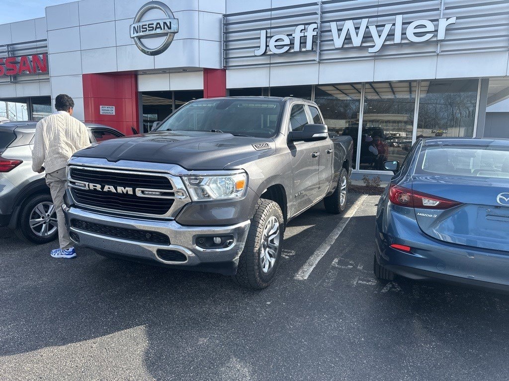 Jeff Wyler Nissan of Louisville is proud to offer this wonderful-looking 2019 Ram 1500 Big Horn/Lone Star in Granite Crystal Metallic Clearcoat. ** HOME DELIVERY OPTIONS! ** Big Horn Level 2 Equipment Group (115V Auxiliary Power Outlet, 115V Auxiliary Rear Power Outlet, 2 USB Full Function/Charge Only Media Hub, 400W Inverter, 8.4" Touchscreen Display, Air Conditioning ATC w/Dual Zone Control, Auto-Dimming Rear-View Mirror, Big Horn IP Badge, Class IV Receiver Hitch, Cluster 7.0" TFT Color Display, Dampened Tailgate, Foam Bottle Insert (Door Trim Panel), Glove Box Lamp, Heated Front Seats, Heated Steering Wheel, Integrated Center Stack Radio, ParkSense Front/Rear Park Assist w/Stop, Power 4-Way Driver Lumbar Adjust, Power 8-Way Driver Seat, Power Adjustable Pedals, Power Heated Fold Away Mirrors, Radio: Uconnect 4 w/8.4" Display, Rear Dome w/On/Off Switch Lamp, Rear Power Sliding Window, Rear Window Defroster, Security Alarm, Single Disc Remote CD Player, SiriusXM Satellite Radio, Sun Visors w/Illuminated Vanity Mirrors, and Universal Garage Door Opener), Quick Order Package 23Z Big Horn/Lone Star (48V Belt Starter Generator and Steering Wheel Mounted Audio Controls), 3 Rear Seat Head Restraints, 3.21 Rear Axle Ratio, 4 Way Front Headrests, 4-Wheel Disc Brakes, 6 Speakers, ABS brakes, Air Conditioning, Alloy wheels, AM/FM radio, Brake assist, Bumpers: chrome, Cloth Bench Seat, Compass, Delay-off headlights, Driver door bin, Dual front impact airbags, Dual front side impact airbags, Electronic Stability Control, Front & Rear Rubber Floor Mats, Front anti-roll bar, Front Center Armrest w/Storage, Front fog lights, Front reading lights, Front Seat Back Map Pockets, Front wheel independent suspension, Fully automatic headlights, GPS Antenna Input, Heated door mirrors, Illuminated entry, Leather steering wheel, Low tire pressure warning, Manual Adjust 4-Way Front Passenger Seat, Occupant sensing airbag, Outside temperature display, Overhead airbag, Overhead console, Panic alarm, ParkView Rear Back-Up Camera, Passenger door bin, Passenger vanity mirror, Power door mirrors, Power steering, Power windows, Radio data system, Radio: Uconnect 3 w/5" Display, Rear 60/40 Folding Seat, Rear anti-roll bar, Rear seat center armrest, Rear step bumper, Remote keyless entry, Remote Start System, Speed control, Split folding rear seat, Tachometer, Telescoping steering wheel, Tilt steering wheel, Traction control, Trip computer, Variably intermittent wipers, Voltmeter, and Wheels: 18" x 8" Our PRE-OWNED vehicles are put through a rigorous 167- POINT QUALITY ASSURANCE INSPECTION along with an average amount of over $1,400.00 SPENT to recondition each vehicle so we can be sure to deliver you the highest quality vehicle like you deserve! ***ONLINE PRICE DOES NOT INCLUDE WYLER FAMILY FIRST PACKAGE*** Stop by 4136 Shelbyville Road to see for yourself, or give us a call @ 502-897-3151 to schedule your test drive!