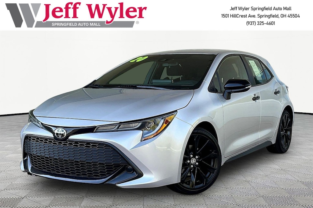 Jeff Wyler Springfield Auto Mall is delighted to offer this good-looking 2020 Toyota Corolla Hatchback SE Nightshade Edition in Classic Silver Metallic. Well equipped with: 4-Wheel Disc Brakes, 6 Speakers, ABS brakes, Air Conditioning, Alloy wheels, AM/FM radio: SiriusXM, Apple CarPlay/Android Auto, Auto High-beam Headlights, Automatic temperature control, Brake assist, Bumpers: body-color, Compass, Delay-off headlights, Driver door bin, Driver vanity mirror, Dual front impact airbags, Dual front side impact airbags, Electronic Stability Control, Emergency communication system: Safety Connect with 1-year trial, Exterior Parking Camera Rear, Fabric Upholstery, Four wheel independent suspension, Front anti-roll bar, Front Bucket Seats, Front Center Armrest, Front reading lights, Heated door mirrors, Illuminated entry, Knee airbag, Leather Shift Knob, Low tire pressure warning, Occupant sensing airbag, Outside temperature display, Overhead airbag, Overhead console, Panic alarm, Passenger door bin, Passenger vanity mirror, Power door mirrors, Power steering, Power windows, Radio data system, Radio: Audio AM/FM, Rear anti-roll bar, Rear seat center armrest, Rear window defroster, Rear window wiper, Remote keyless entry, Security system, Speed control, Speed-sensing steering, Split folding rear seat, Spoiler, Sport Front Seats, Steering wheel mounted audio controls, Tachometer, Telescoping steering wheel, Tilt steering wheel, Traction control, Trip computer, Turn signal indicator mirrors, and Variably intermittent wipers. Ask about available certifications. Used vehicles 10 years of age or newer with less than 100,000 miles are eligible for the Wyler Assurance Program, but eligible vehicles must pass our reconditioning process and multi-point inspection. Provided the vehicle passes inspection, vehicles will be eligible for the 6 month/6,000 mile limited warranty. The 6 month/6,000 mile limited warranty is NOT available on AS-IS vehicles, wholesale vehicles, lease buyback/pass-thru vehicles or un-inspected vehicles. Note that this program can also apply to vehicles where the remaining factory coverage is less than 6 months or 6,000 miles. Please check the Federal Trade Commission (FTC) Buyers guide on the vehicle for full details as to whether or not warranty coverage may apply. Contact Dealer for additional details. The Wyler Assurance 6 month/6,000 Mile limited warranty ends 6 months from the date of the Retail Purchase Agreement (BUYERS ORDER) or when the vehicle's odometer registers 6,000 additional miles to the mileage listed on the BUYERS ORDER, whichever comes first. Your Deductible - The warranty holder on your contract pays the first $100 of each covered repair.